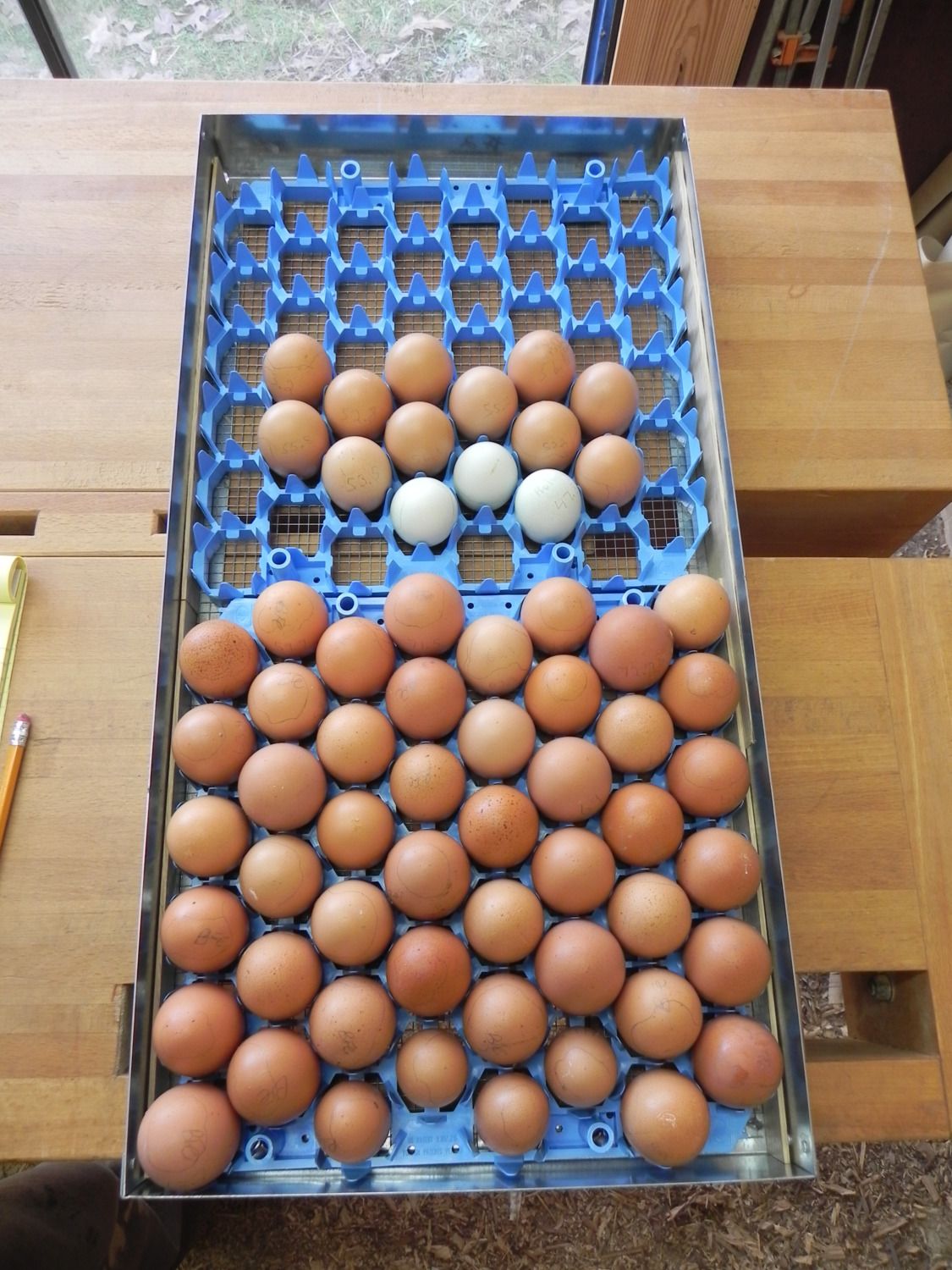 So EGGciting!Well I received the Bielefelder eggs today. Perfect timing weather-wise because it's supposed to get down into the teens tonight. The ones in front came from coastline poultry in N.C. I ordered 40, she sent a few extras and some pullet eggs from one that just started laying. The air cells were saddle shaped and some looked pretty rough. Some of the eggs I couldn't tell what was going on in them. One egg was cracked out of 48. Overall I think they are in typical shape shipped eggs will be in. The eggs in the back section are from Pam. I think they were handled a bit rough as the box had a dent on a corner. The air cells were badly distorted. The lighter colored eggs are Legbars that Pam through in as extras. One of them had a rolling air sac and it looked like the yoke was damaged. I don't have high hopes for this hatch but we'll see what happens.My plan is to let the eggs rest for about 12 hrs because some of the eggs from N.C. are about 7 days old already. Put them in the incubator tonight with turner off. Wait 48 hrs and check the air cells. Then after that I'm not sure???