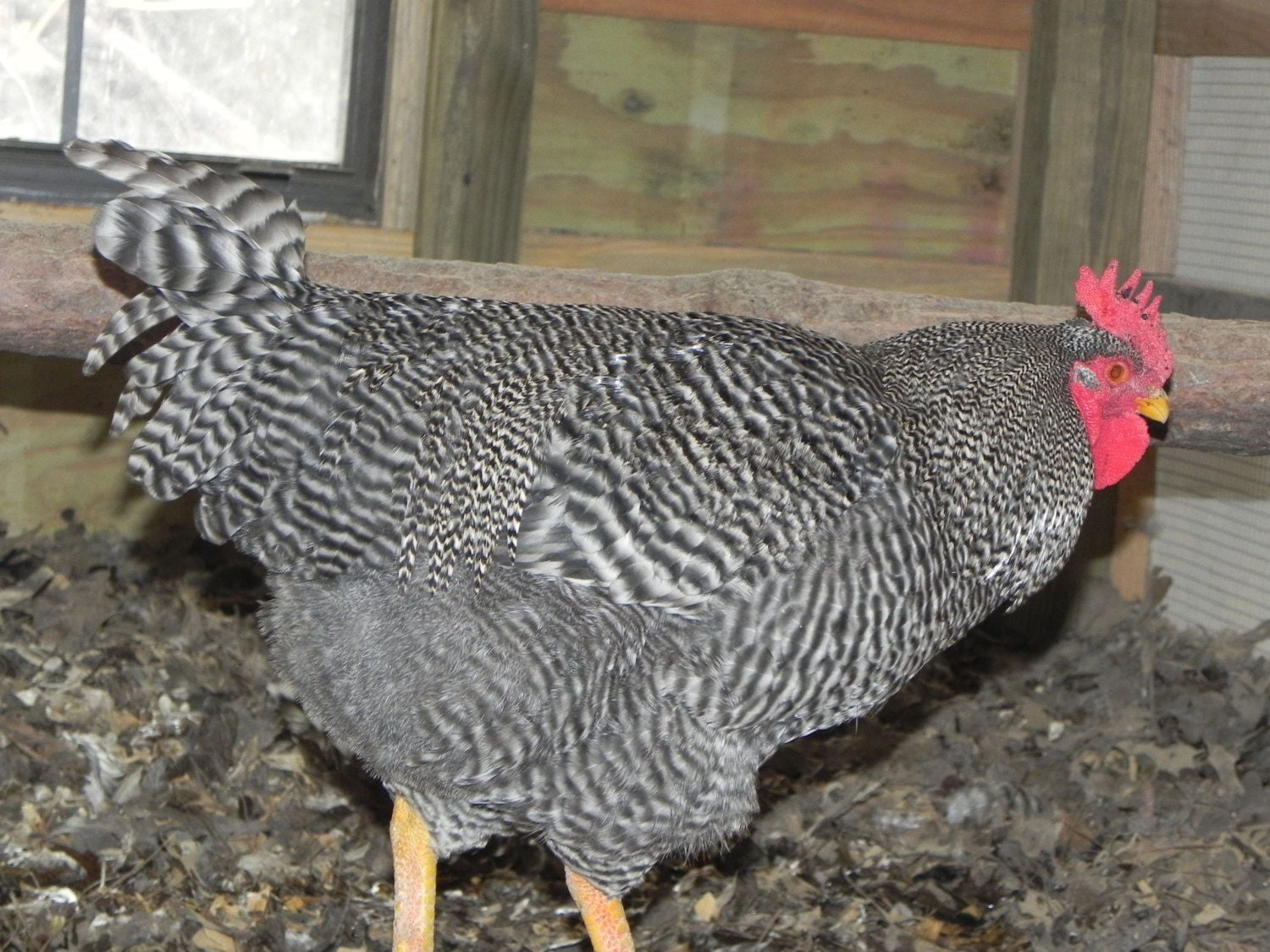 But they're so GORGEOUS!The one bird in this photo that is questionable going by combs is on the top roost with it's back facing us but it has pointed hackles and saddle feathers also you see a tail hanging down.They all look like this typically.