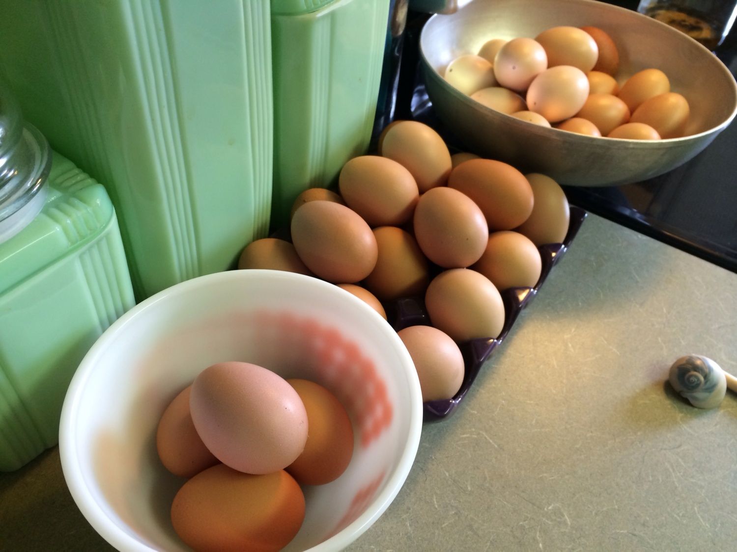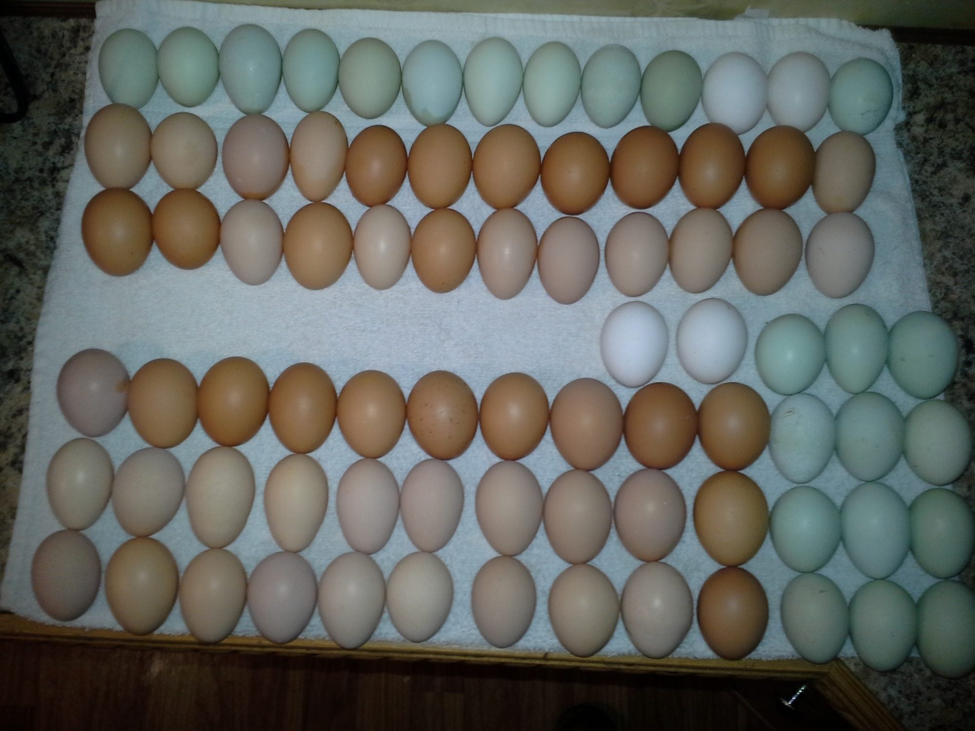 It's been waayyyy too long! I started getting eggs again about two weeks ago. Everyone has finally finished molting and feathered out. No more naked chickens! Everyone has also finally agreed that they do not have any sort of creepy crawly. They were neurotic for so long! lol...