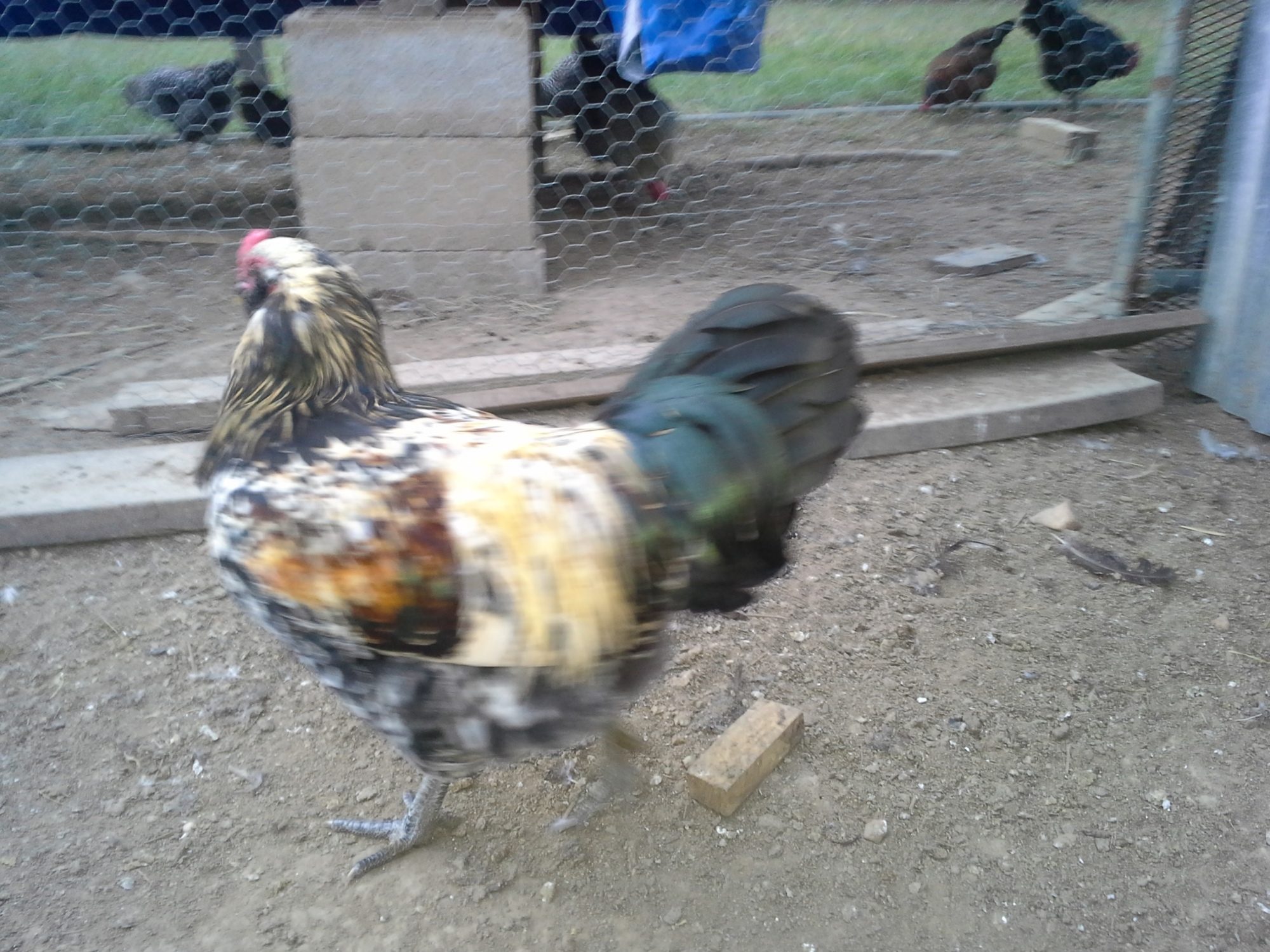 On another note and project, i had given this roo away before the first of the year, now he is back in full bloom, no pics yet, he will re-enter my EE program with his own few girls. I recently recieved back from a freind an olive egger roo from my Dec hatch, the first one, he has the blue ear lobes, plus i purchased back 5 OE pullets hatched from the same line of eggs who also have blue earlobes., The RIR roo i was giong to use as a breeder will only be used to prduce egg layers, in recent months i noticed a hump on his right back around the wing area, after examining, i found his right thigh about 3 fingers higher on his side than the left, he shows no limp nore has any problem but i do not want to take a chance of passing something genetic down from him to a for sale flock. I also have 1 trio of Buff Orpington, 1 trio of RIR, 1 trio of White Rocks, 1 trio of Buckeys, 1 trio of Brown Leghorns, 4 pullets 1 roo of GLW and 1 trio of SLW, 1 pair of blue Wheaten Marans if there is such a thing. OH, you want more news?? I have created my own Cream Legbar White Leghorn EE roo with the blue ear lobes, looks like a game cock, i have also got a barred EE pullet, I will quit here and let your minds rest, or mine, Now you know what has been keeping me away from BYC the last couple months and i am just barely getting started with the seperate pens needed for each breed, oh, i left some out by the way.