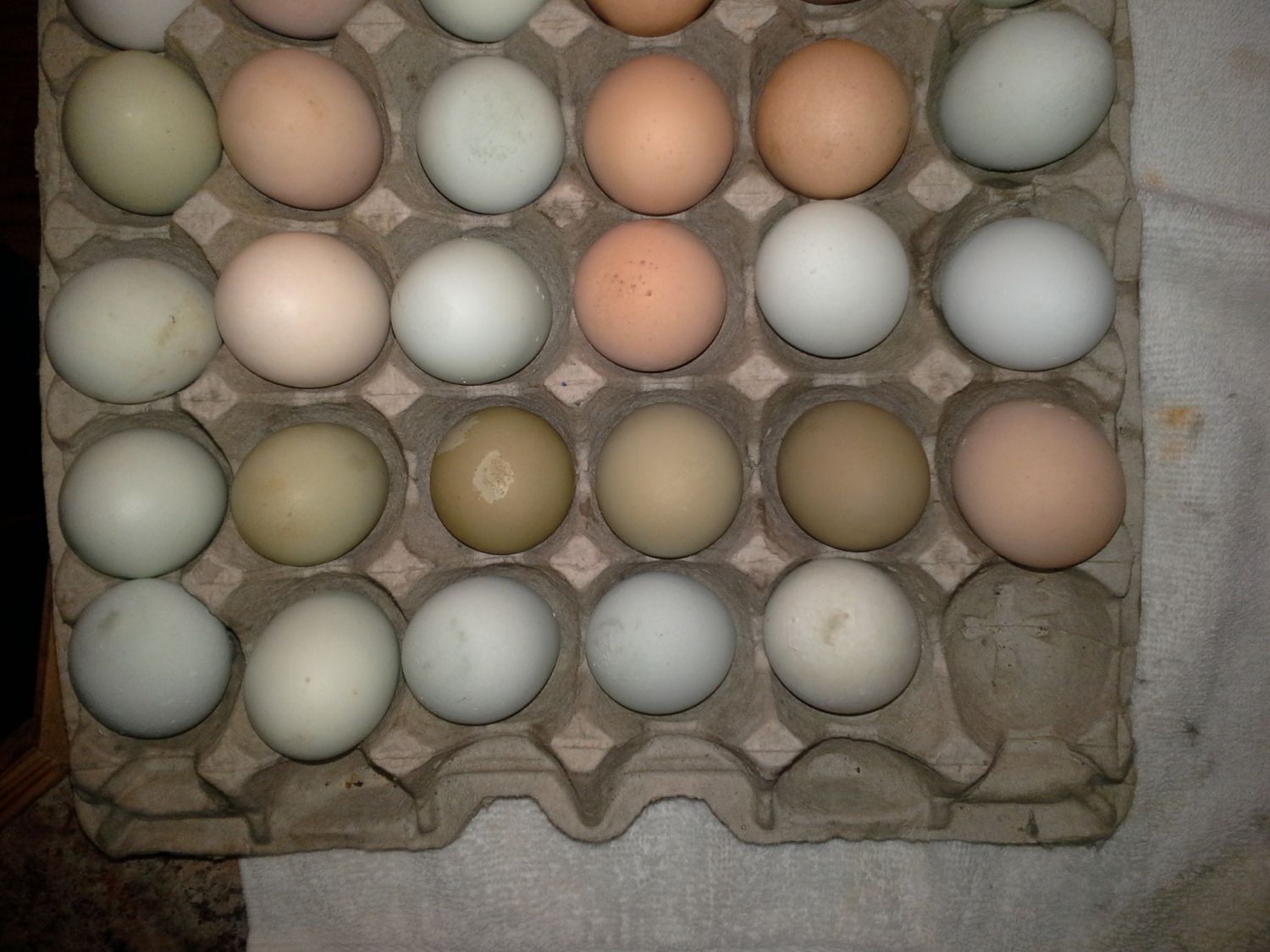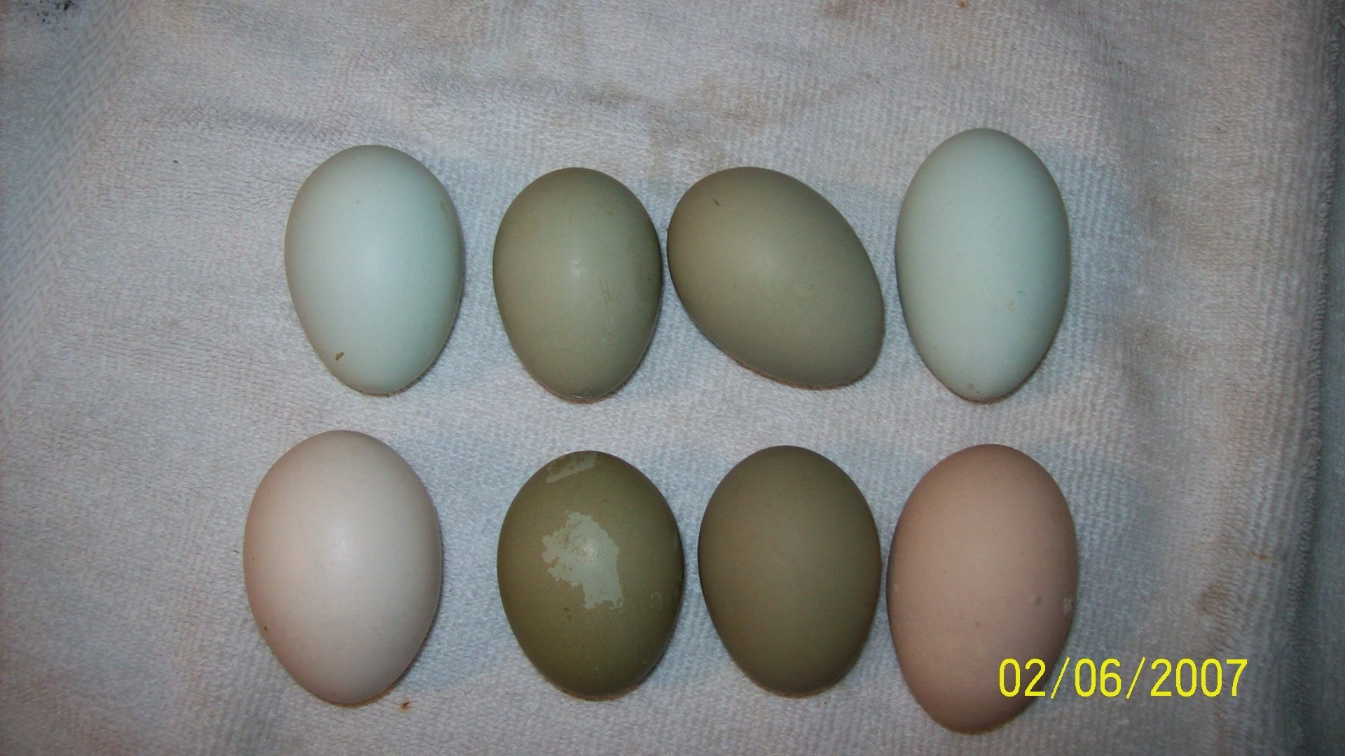 Well, i have been busy since i got home, been exspanding chicken yards, clearing out garden, we have hatched 1 lavender orping cross from a broody hen, and best of all, my OEs that i worked on for months have started laying, the first pic is with my phone, the second is a digital camera, much more realistic The light spot is where the pullet scratched the egg before it dried, i am just tickled pink with these, now i cant wait to get started on phase 2 and then on to marketing these F1 eggs. i am happier than a pig covered in crap.:ya oh, i didn't set the date on the camera.