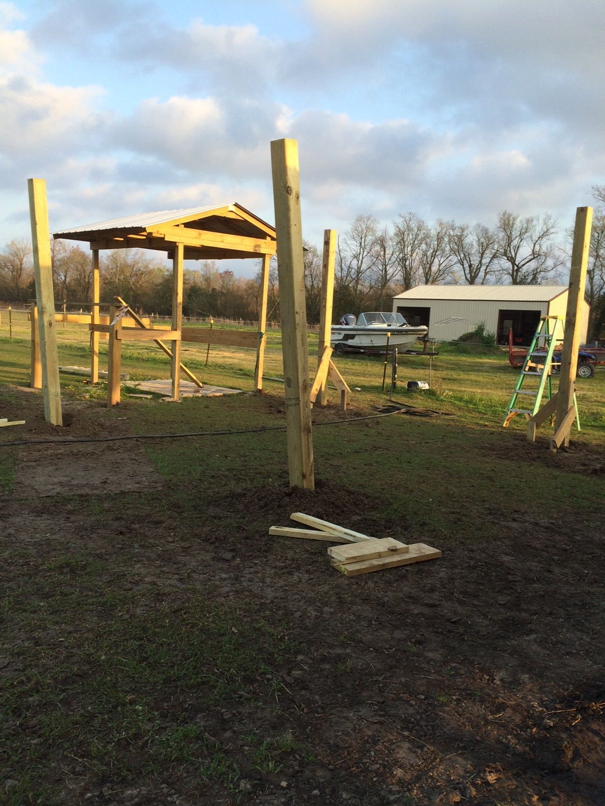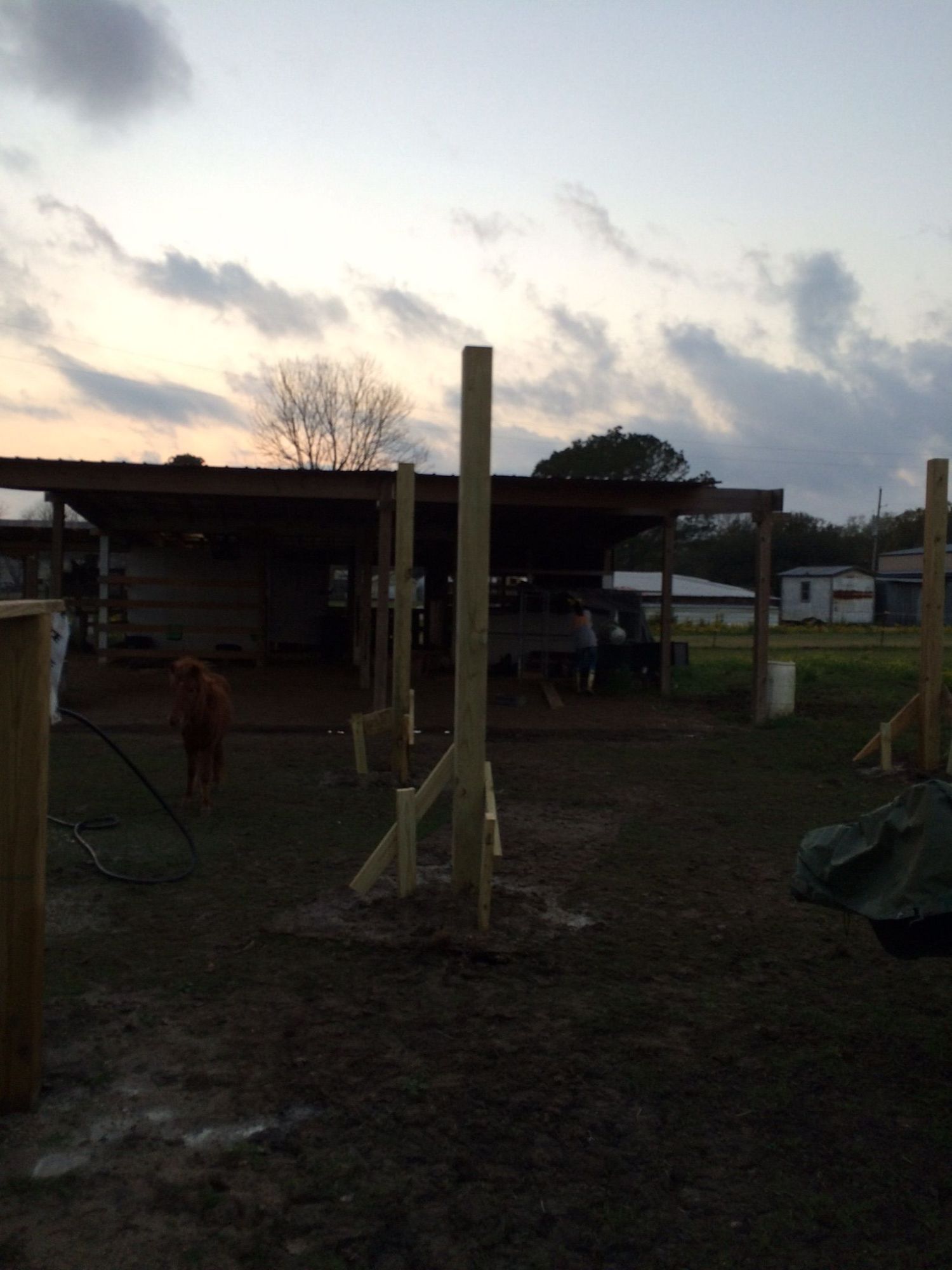 I wanted to post more yesterday but couldn't find the time. We are expanding the barn. We dug the holes for, set, leveled, concreted, and braced the 6 main 6x6s for the new side. We managed to finish right before dusk, and I'm very glad we knocked it out in one day. I didn't take any good photos that show the whole thing, but have a few of the new posts