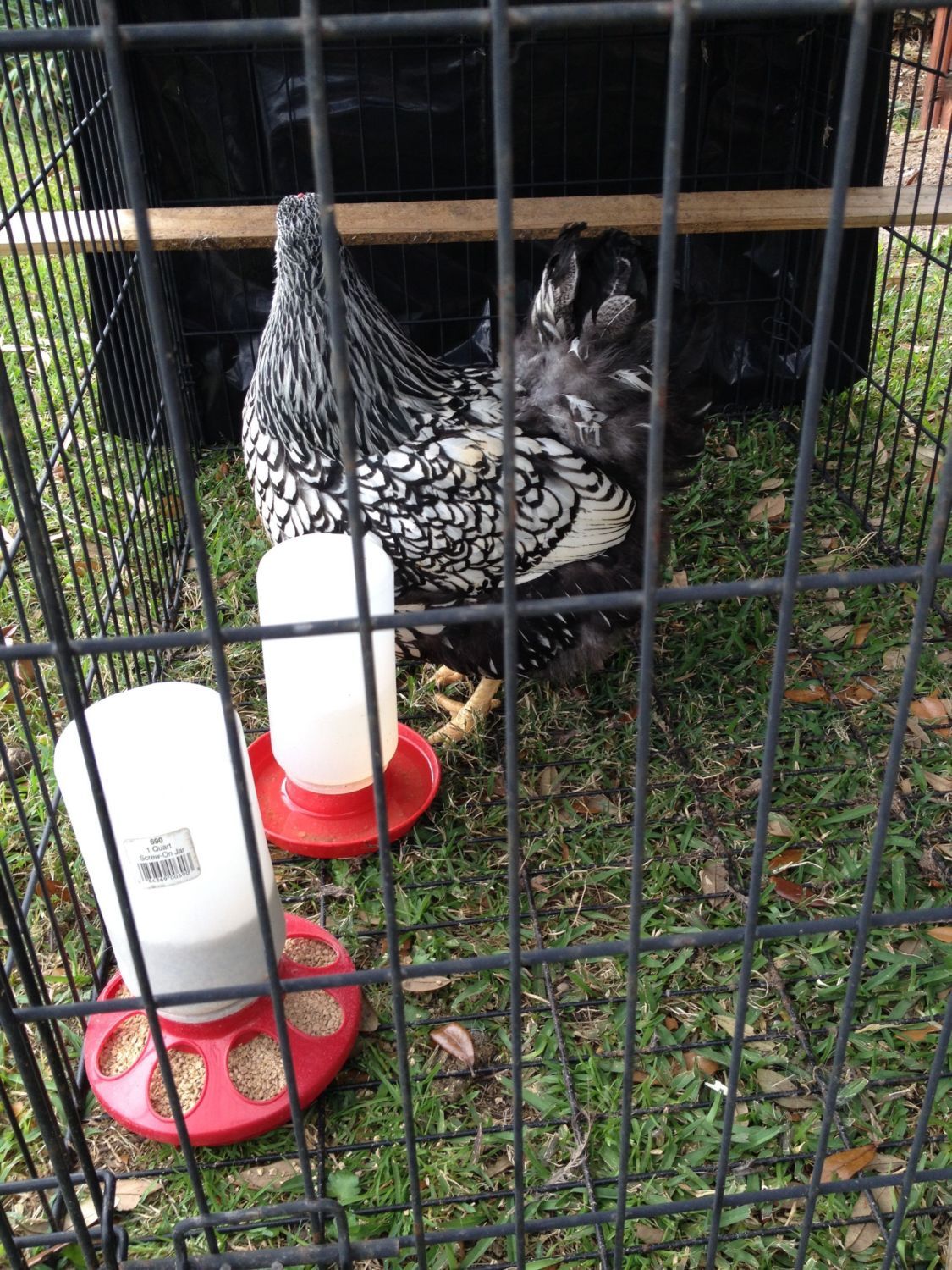My new silver laced hen also came in the mail yesterday. She arrived safe, grouchy, and mid moult. I set her up next to my flock for a proper introduction