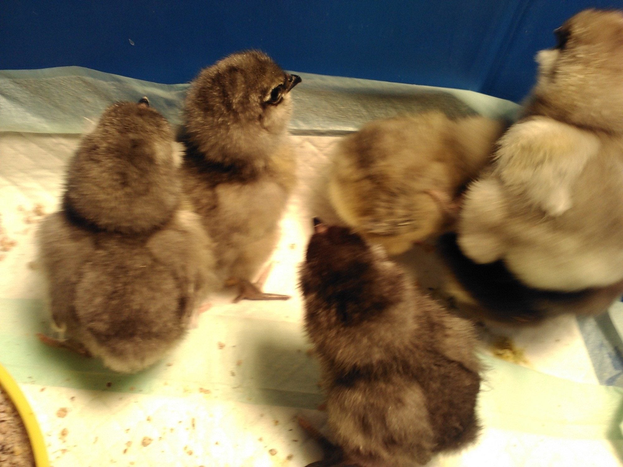 "Very chatty" is a great sign. Sorry about the one loss, it's always heartbreaking. Look forward to pics as they grow!Yes they made it this morning. I ordered ten but one didn't survive the trip so I have nine. They are all thriving and are super cute! It was storming when we got home with them so I put their food in a dish temporarily. My feeder is out in the shop. They are all eating and drinking very well now and very chatty. LOL![]()