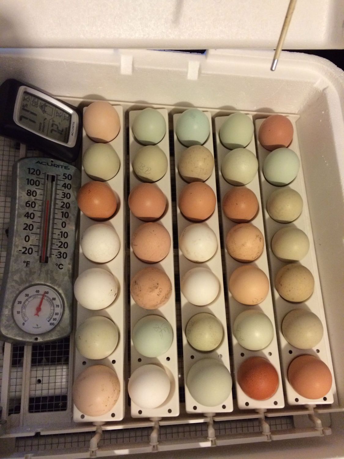 SO happy for you! Yep, Georgette & Gracie both laid those robin's egg blue eggs. Nice color on the BCM egg! All in all, a very colorful incubator. Enjoy your cruise!