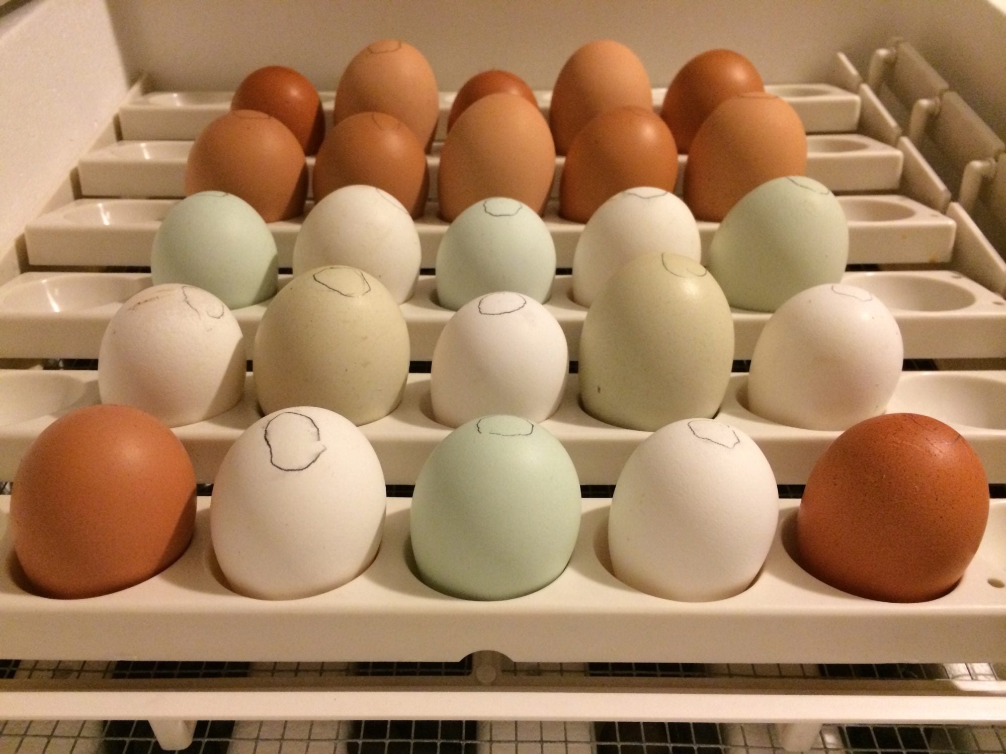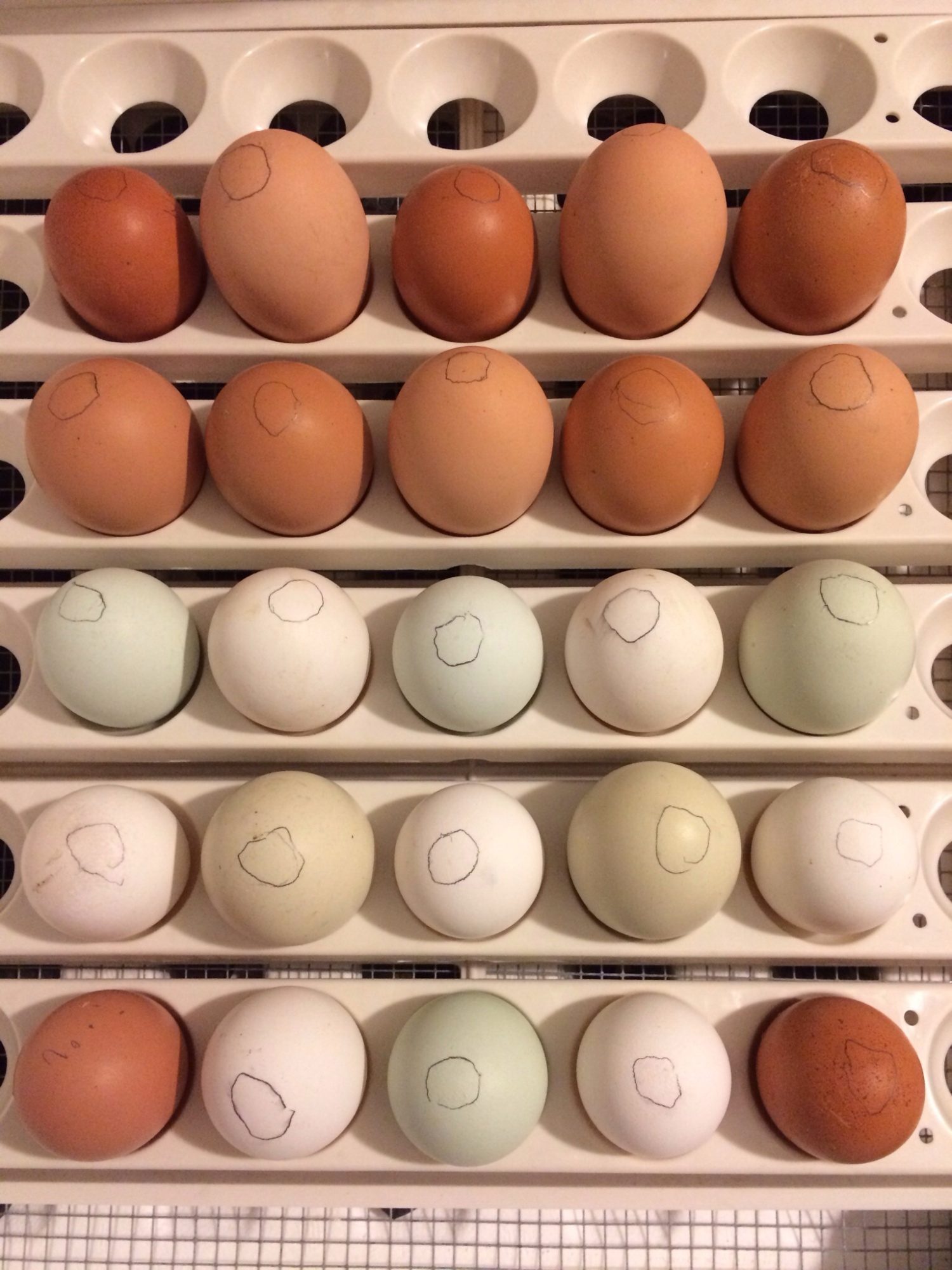 -Jumbo green eggs: second generation of the same project, bred back to legbar for bluer eggs.