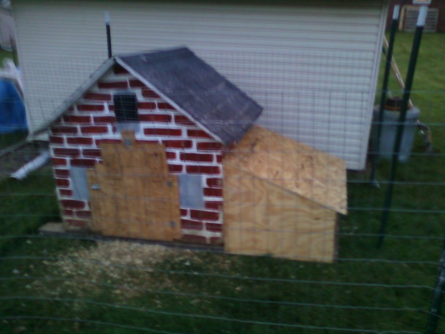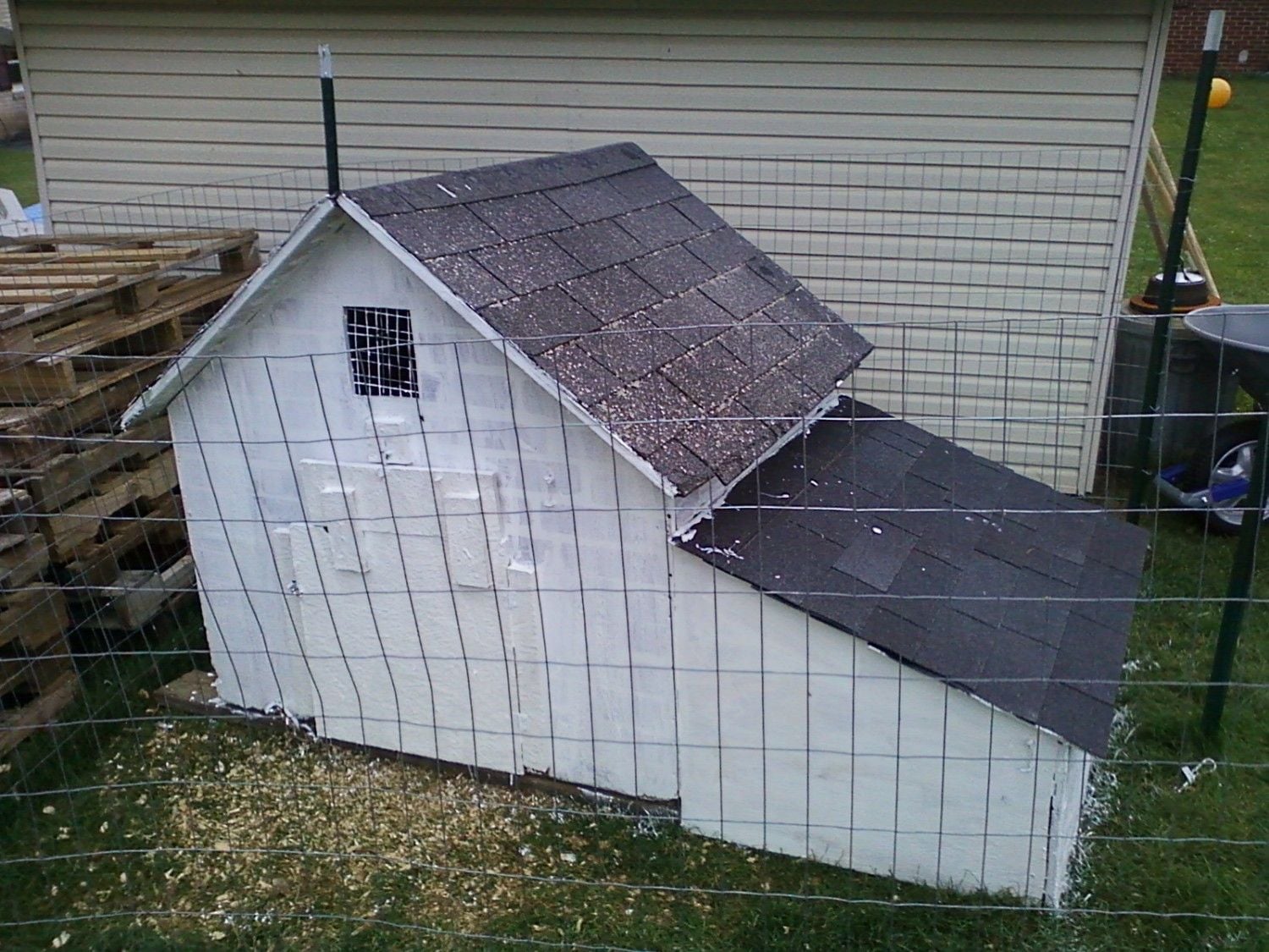 This dog house was recommissioned as a chicken coop. I had all the material I needed laying around. I plan on raising it up off the ground in the spring.