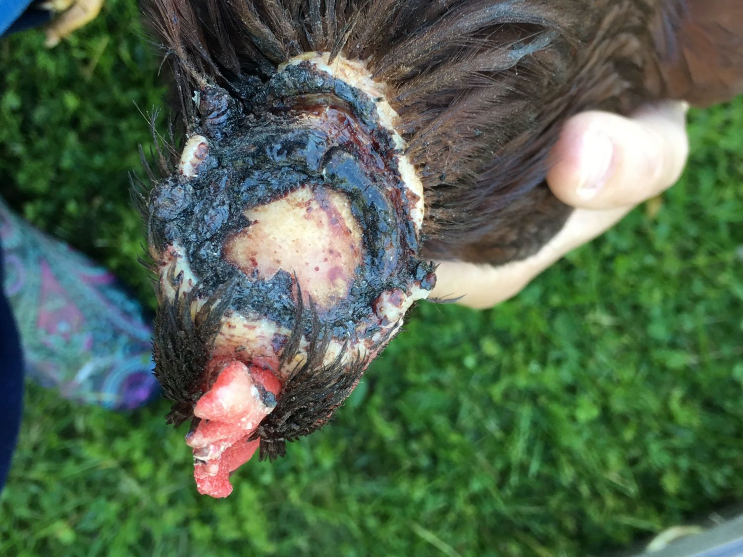 Lucille was given to me by a friend because she was being badly picked on by his other birds. Her skull is exposed, and while she doesn't appear to be in any pain, I want to make sure I am doing all for her that I can. Her previous guardian cleaned it thoroughly with soap and water, and wrapped it for the first day or so. It is open now, and as far as I can tell, aside from the severity of the injury itself, it looks all right. I haven't touched it, yet. I wanted to do some reading, and ask for any advice this group may have.