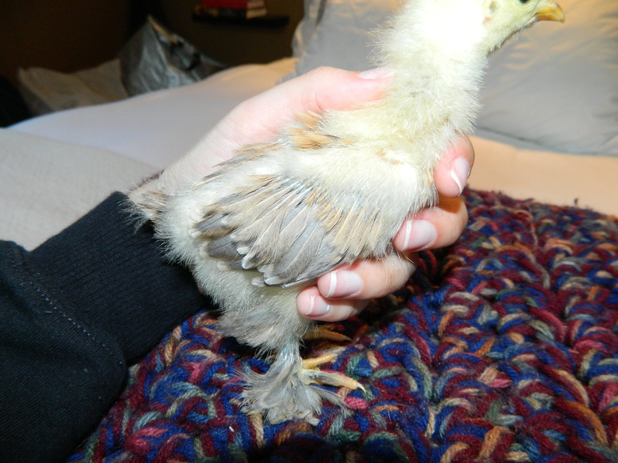 And here's one more pullet I don't know the color on. She's starting to get more buff splashes in, but her base color is cream, not white
