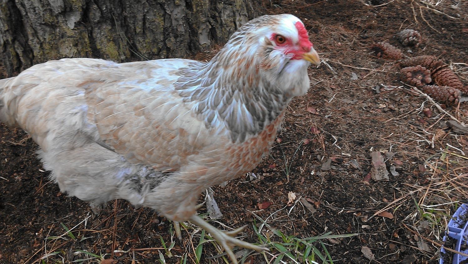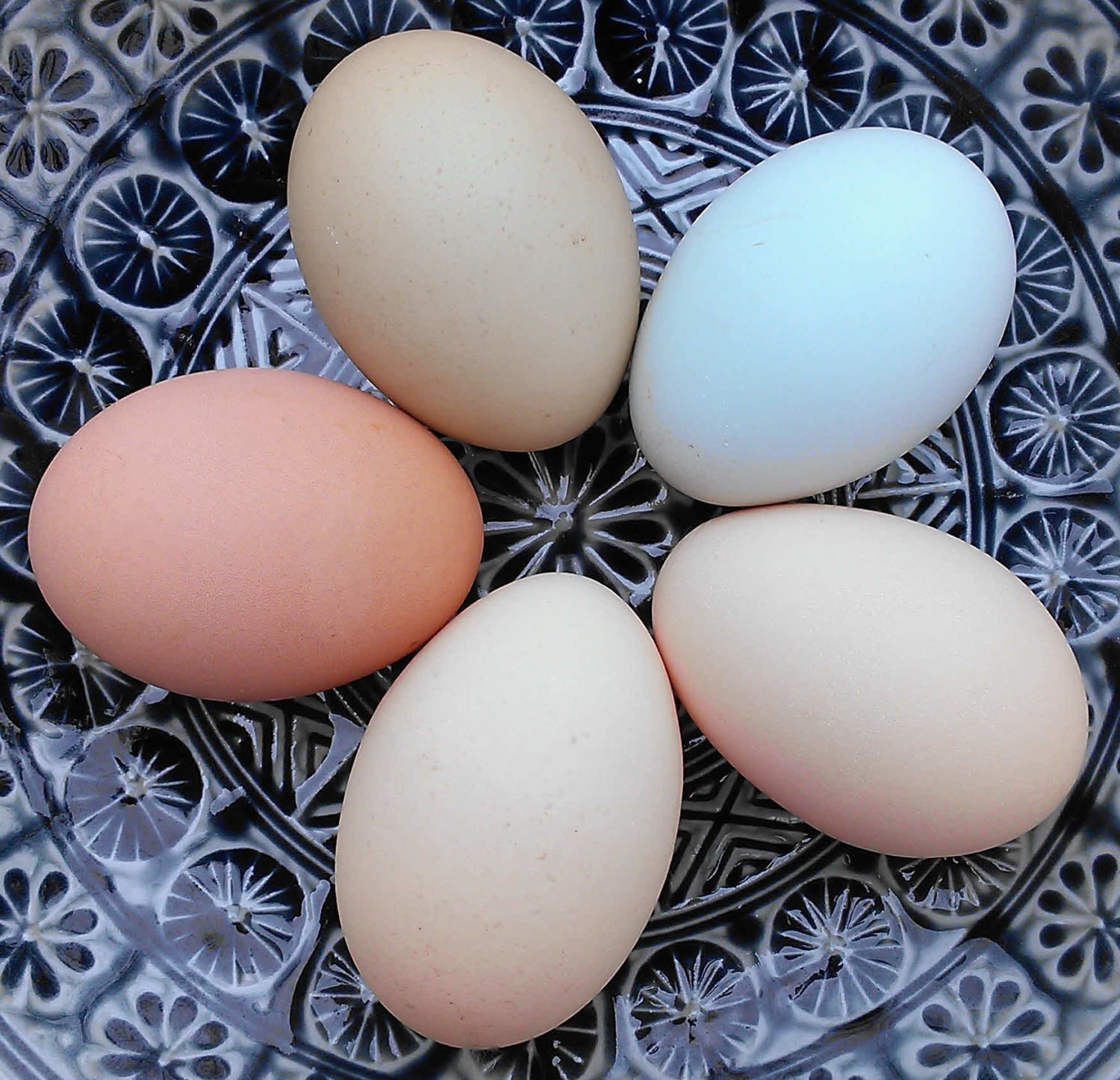 I became fascinated with the Wheaten Ameraucanas, and their astonishing blue eggs, when MPC announced that they would offer them as day-old chicks. And I noticed that my pale colored EE chick, Chicken Patty, had grown up to look a lot like a Blue Wheaten Ameraucana. Of course Patty is just an EE, a mongrel with I don't know what in the mix. But her coloring caused me to hope that she might carry a genetic profile that would give her eggs a lovely blue coloring, unlike the olive green of her sister EE, Chicken Tenders.