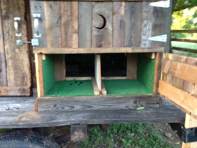 From the outside. Now, here's the "fun" part. There are 2 ways you can gather the eggs. The lower door: