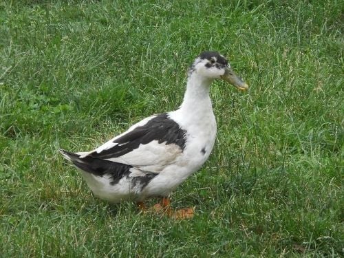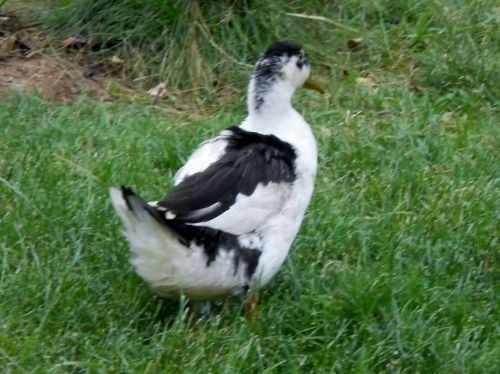 We got our Magpie ducks at our local feed store (Monroe Coop). They are a delight. We have a drake and 2 hens. From left to right: Larry, Curley and Mo. Curley has a crest. All three have green beaks. They are very social, enjoying human company, as well as our chickens and cats and the neighbor's dog. They can be pretty noisy, chattering among themselves and calling to us and the other birds. They stick pretty close to home, even though they free range with our chickens. They are about 3 1/2 to 4 months old, so haven't started laying.