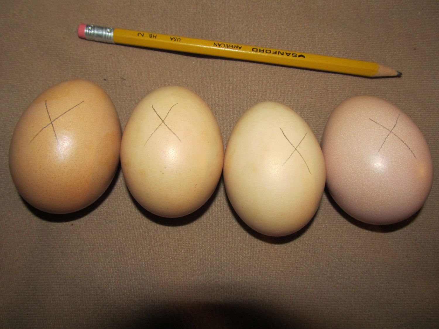 Well, here's a color comparison. The two in the middle are my mystery eggs.