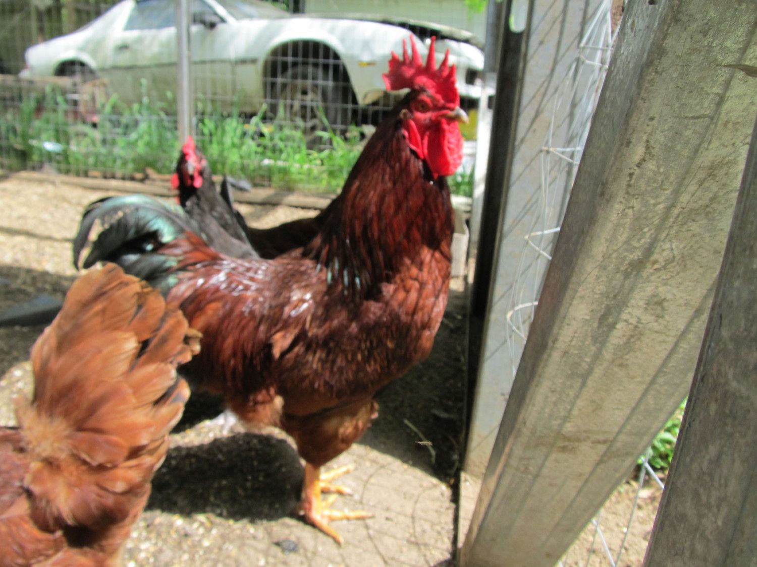 I knew right away who the elderly woman was getting so upset over. My Rhode Island Red rooster, aptly named Red, was currently terrorizing a car. A few of the girls had followed the crafty rooster out into the front yard, but Red was my only real concern.