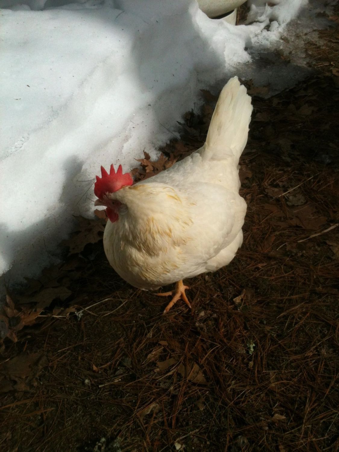 I have a question! Do chickens eat snow to meet their water needs? One of my roosters has flown the coop. He roosted high up in a tree last night. I gave him food yesterday in the woods but no water. I recall some ppl telling me that they can survive on snow. Anyway I hope to get him back in the coop but he's feisty and is not getting along with the RIR rooster who I finally hope to get rid of this weekend!