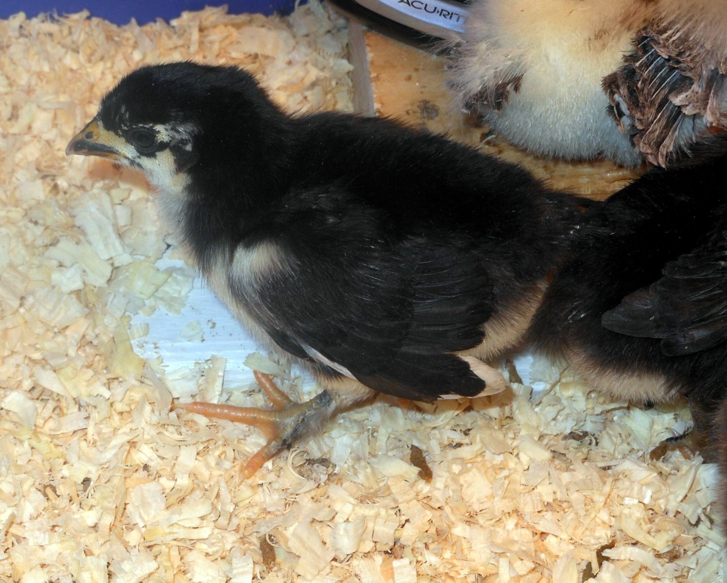 I'm not sure what kind of markings that Orp will have, but her wings are so beautiful. She is such a doll. She's also the only one not yet named. My daughter doesn't like to rush into these things. The roo is something french my husband came up with. I can't pronounce it, so I'm calling him Bill. My son named the all black marans Hailey and I named the black and white marans Dottie Speckles.