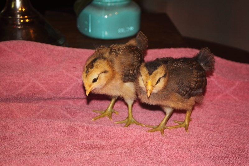 This is face on, has thicker legs and looks like a tiny comb starting. One in the front. Pic dont show the color as well as in person. But you can see the color difference compared to the other in background.