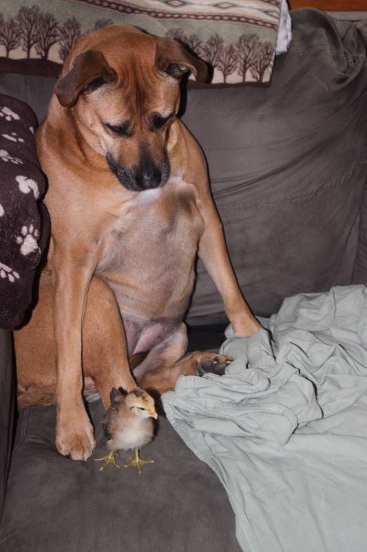 THEN as i was sitting outside, my dog lifts it head and sniffs, hackles rising, and stops, staring at one spot,,i look and look, and theres a big ol red fox sitting there watching the chickens,