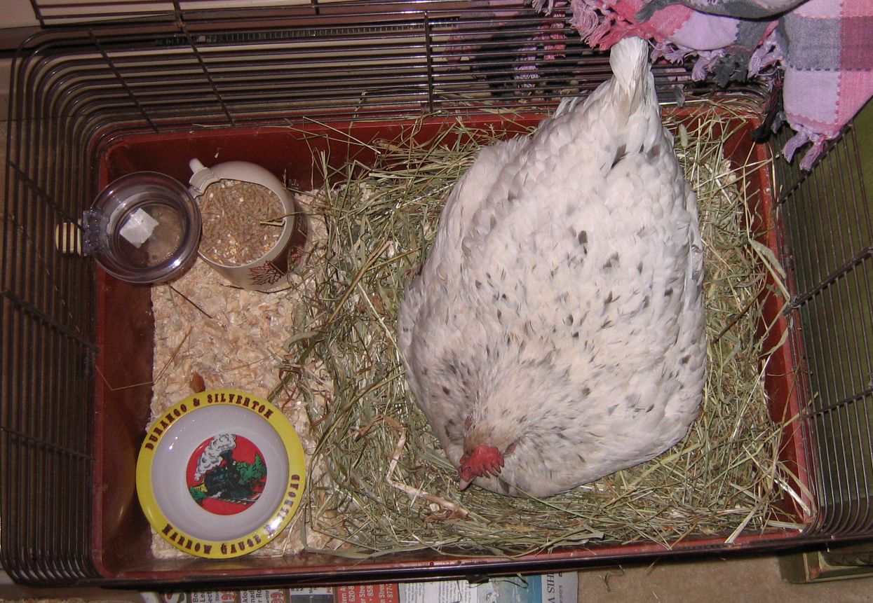 My broody Maran is still at it and no more explosions (I just read that Marans can be annoyingly broody... this will be interesting as she isn't even a year old yet.) But we have a routine now: I take a bucket of luke-warm water out to the driveway, I take out a bowl of moistened pellets and bread, then I grab her off her eggs throw a warm towel down on top of the eggs, hold her at arms length in front of me and run through the house as fast as I can out to the driveway while my husband gets the doors for me. She eats, drinks, evacuates her bowels, and I get her back in with a minimum of fuss.