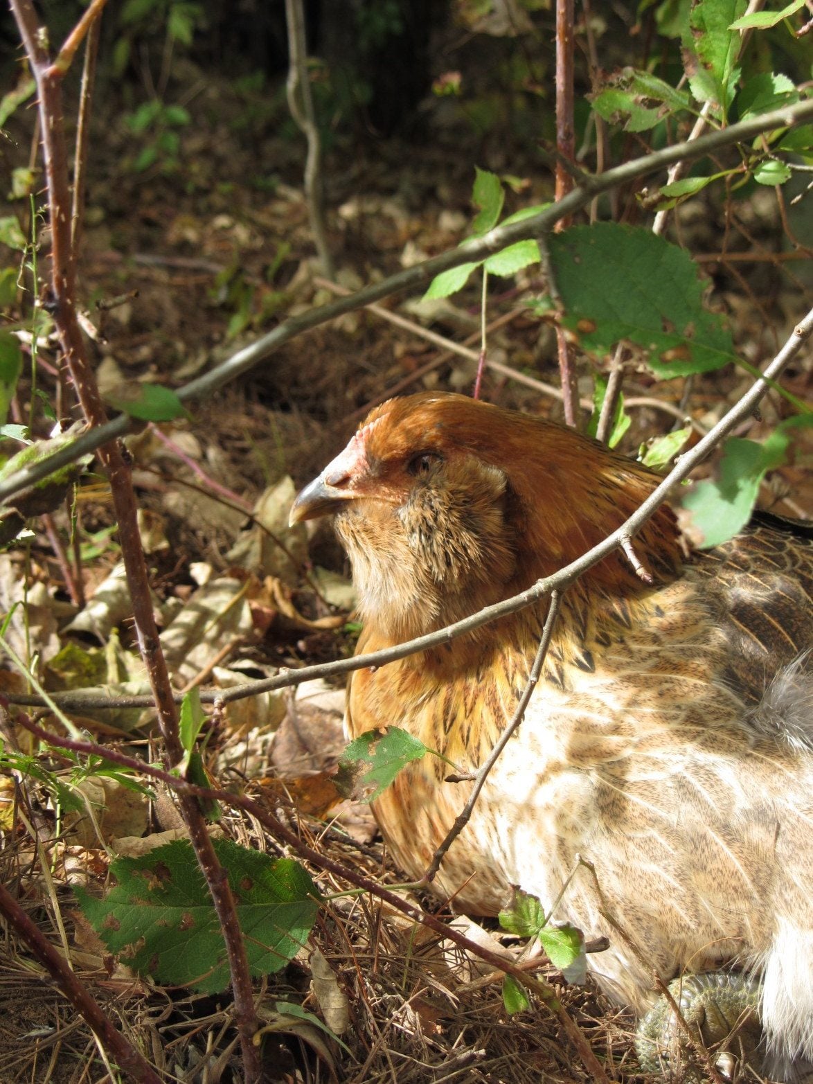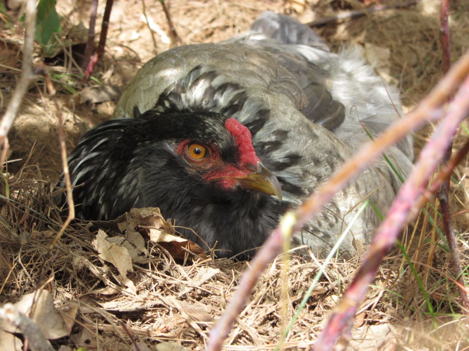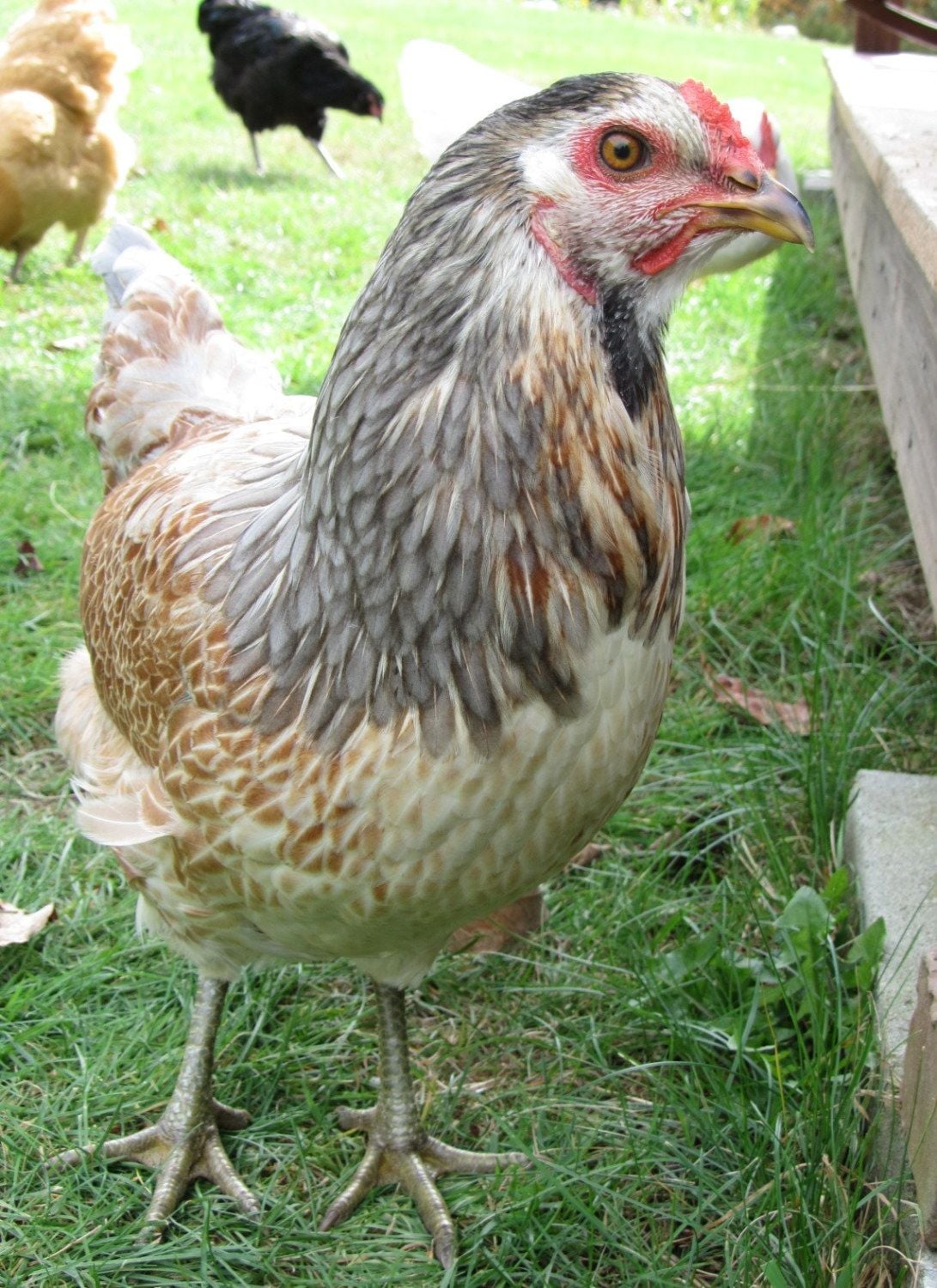Here is racing stripe ( ya, I know, weird name!) rooster in the background- he is starting to fit in!