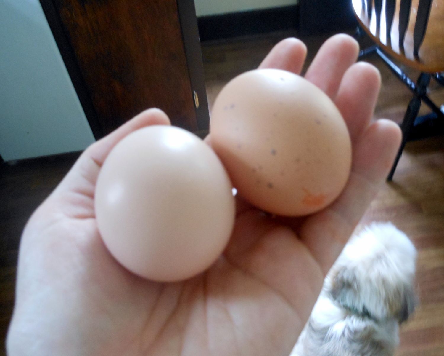 We actually got the first 2 within minutes of each other. The one on the left is from the Red Sex Link "Blanche II" and the one on the right is from the White Rock "Spyro".