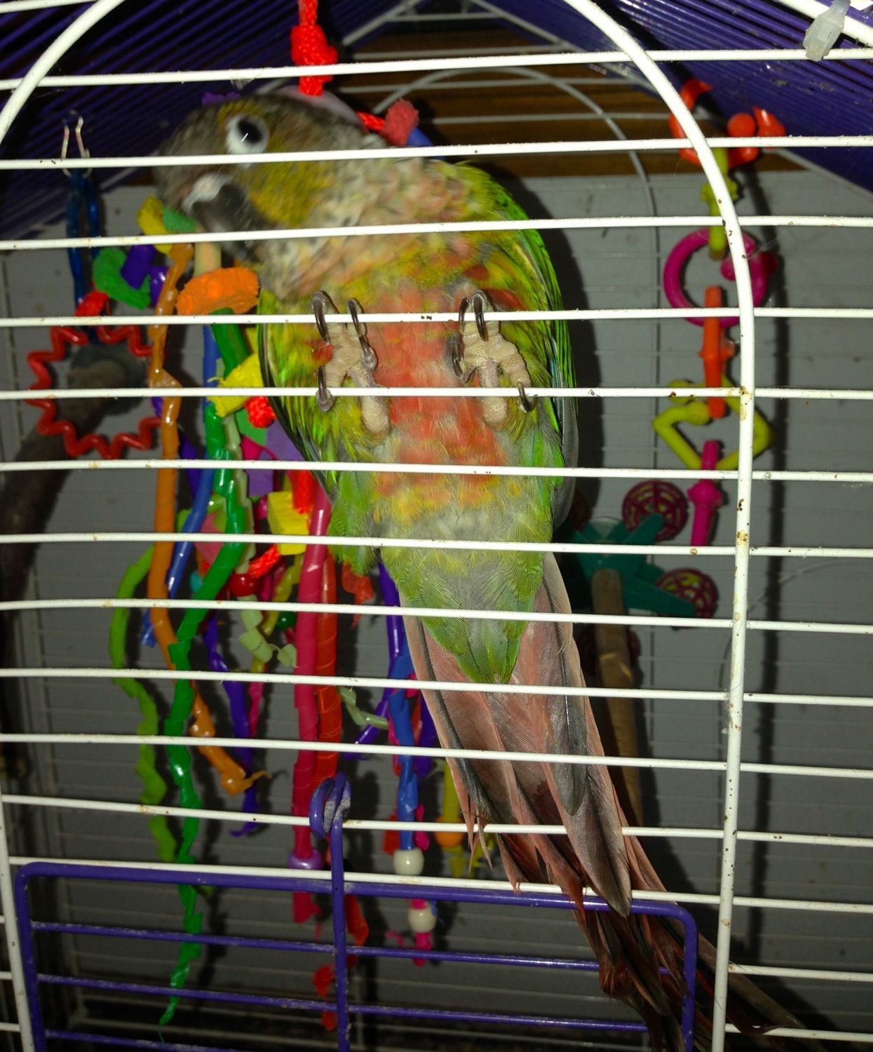 Meet Bojay the four month old yellow sided green cheeked conure. I had a normal green cheek for 20 years that I lost a few years ago and was finally ready to replace her. This guy is an absolute clown. Loves to lay on his back. And unlike other species of conures the green cheeks are not known to be screamers.