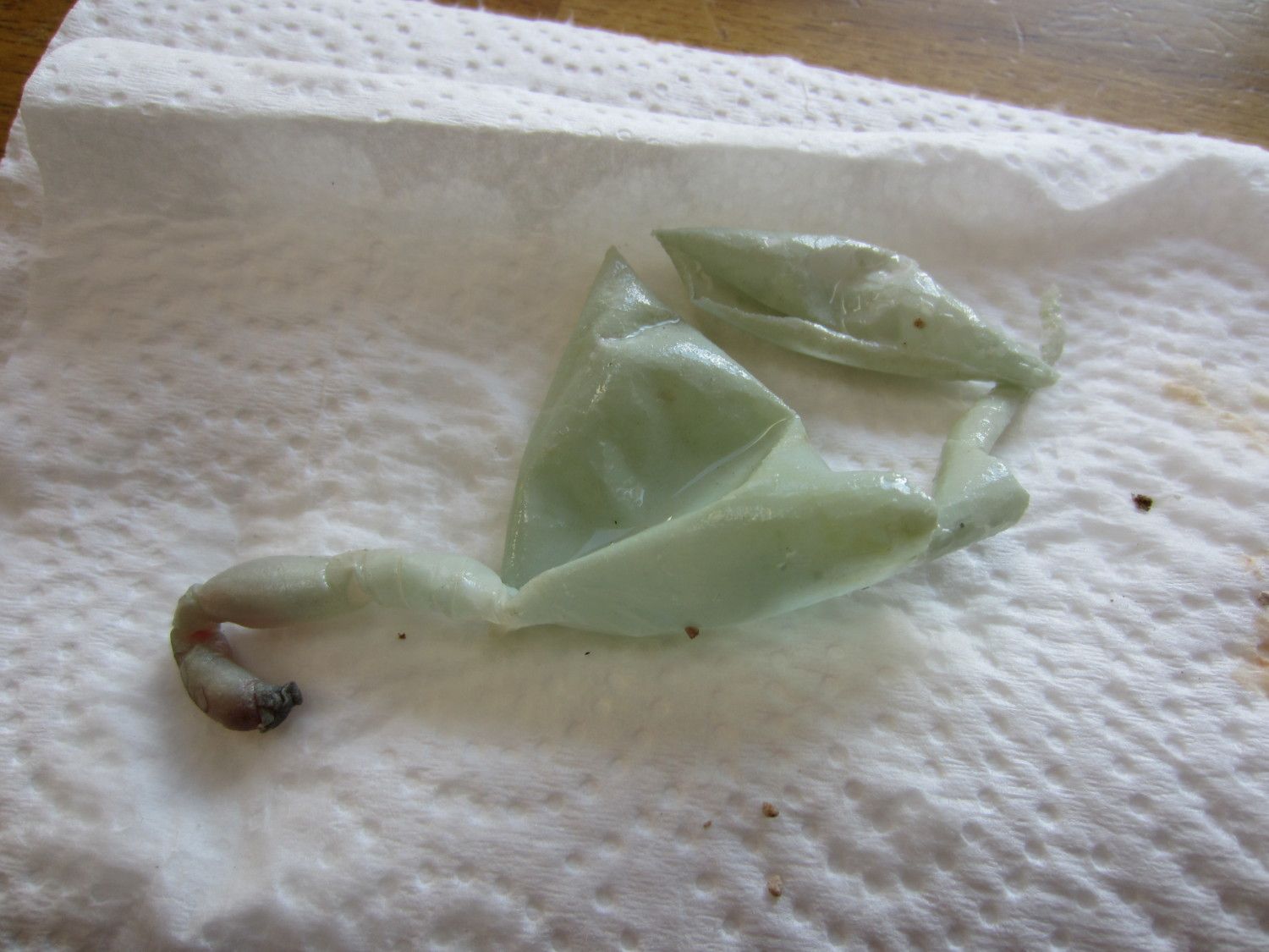 This photo is after I cleaned it to see what it was! It is from one of 2 of my EE girls who has been laying occasional soft shelled eggs.( I can discern it is one of two by the egg color, just not sure which girl!) Often times she lays them right f