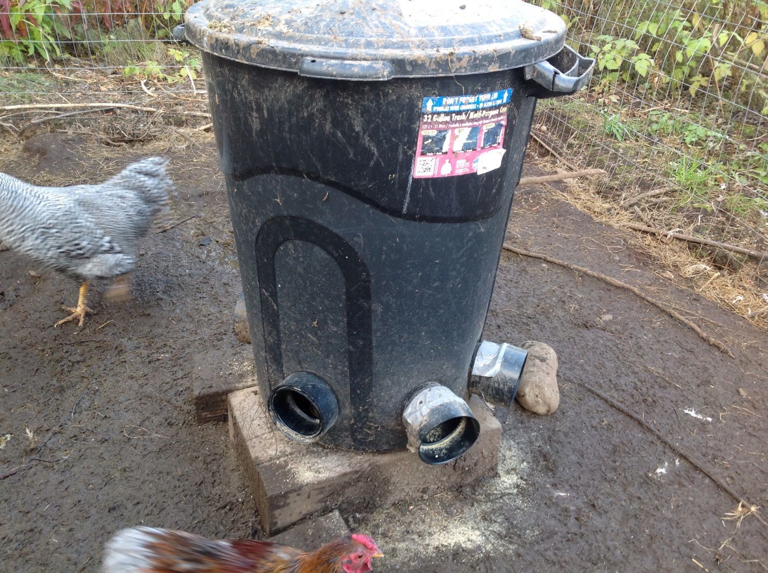 I used the drainage street 90s (from post 3) I cut off of the flange (as in post 3) and drilled the holes with a hole saw, the bottom of the elbow is about 3/4" off the bottom of bin... The drilled holes were about 1/8" too small so I went around with a heat gun and warmed the edge of the holes on the tub and then pressed the elbows in, once cooled they are held firmly, so no other securing method was needed...