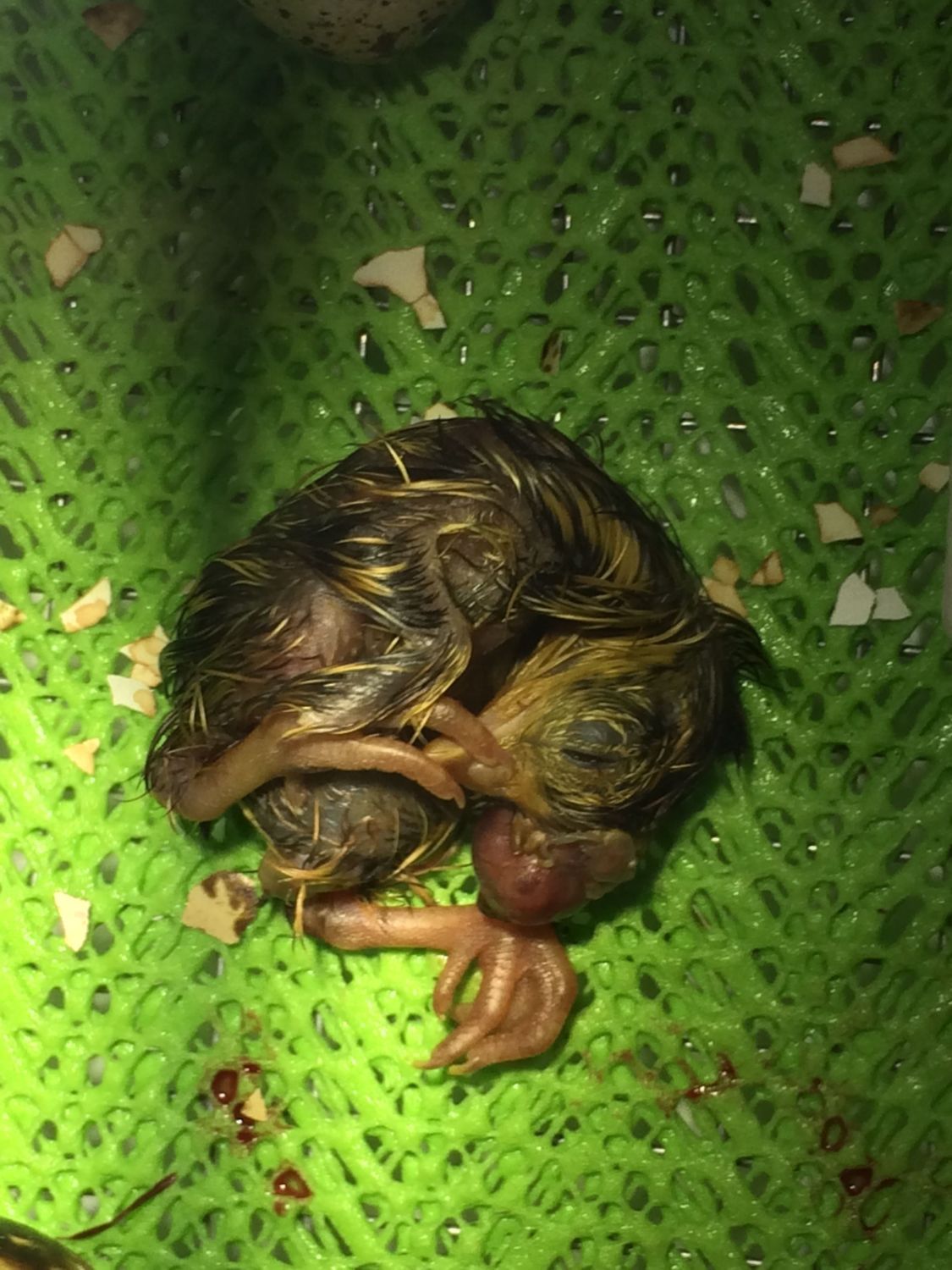 My quail have been hatching yesterday and today. Today I had one just hatch that seems to have a tumor on his head... I've read about unabsorbed yolk sacs, but this isn't that. Any chance that this little guy will make it? Is it suffering? Poor little chick, all of its mates have been perfect so far.