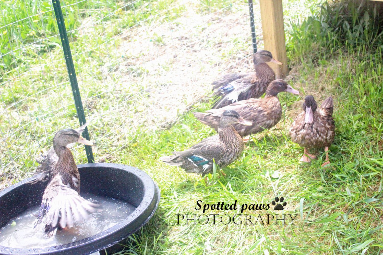 Here is my female Mallard duckling, Pyrrhos, with her "siblings" who are Welsh Harlequins: