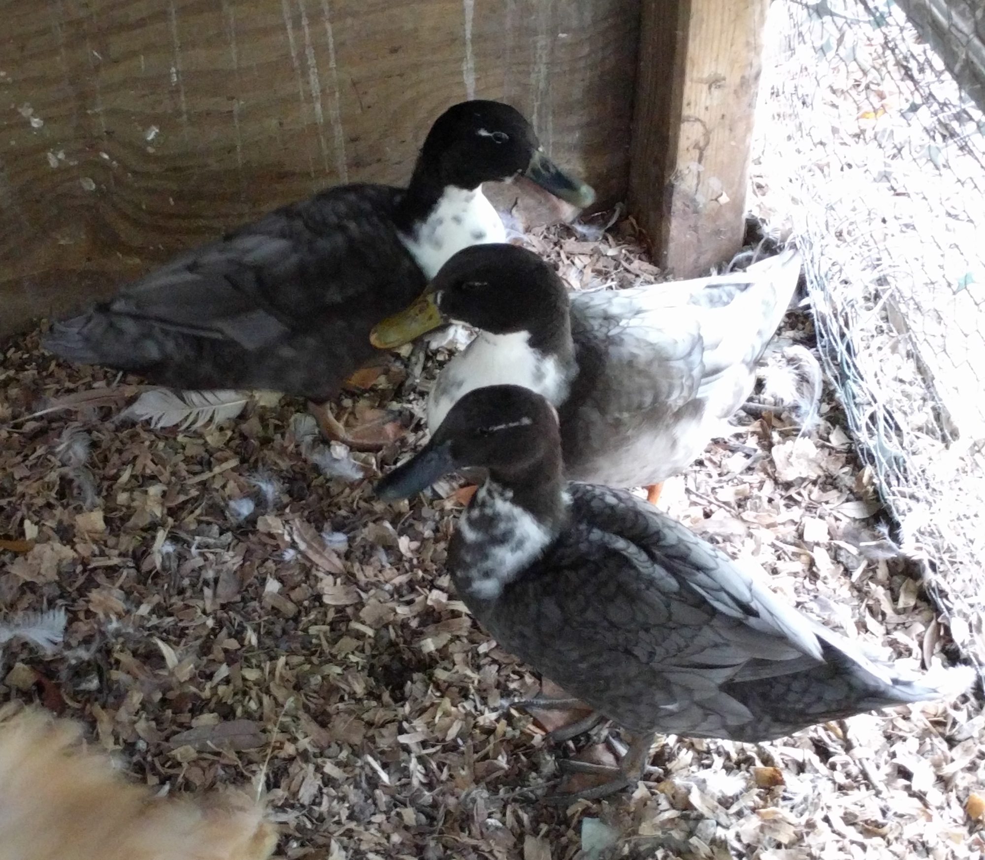 Here's more picturesNot sure. One looks like a Blue Swedish, the other, maybe a Fawn and White Runner mix.