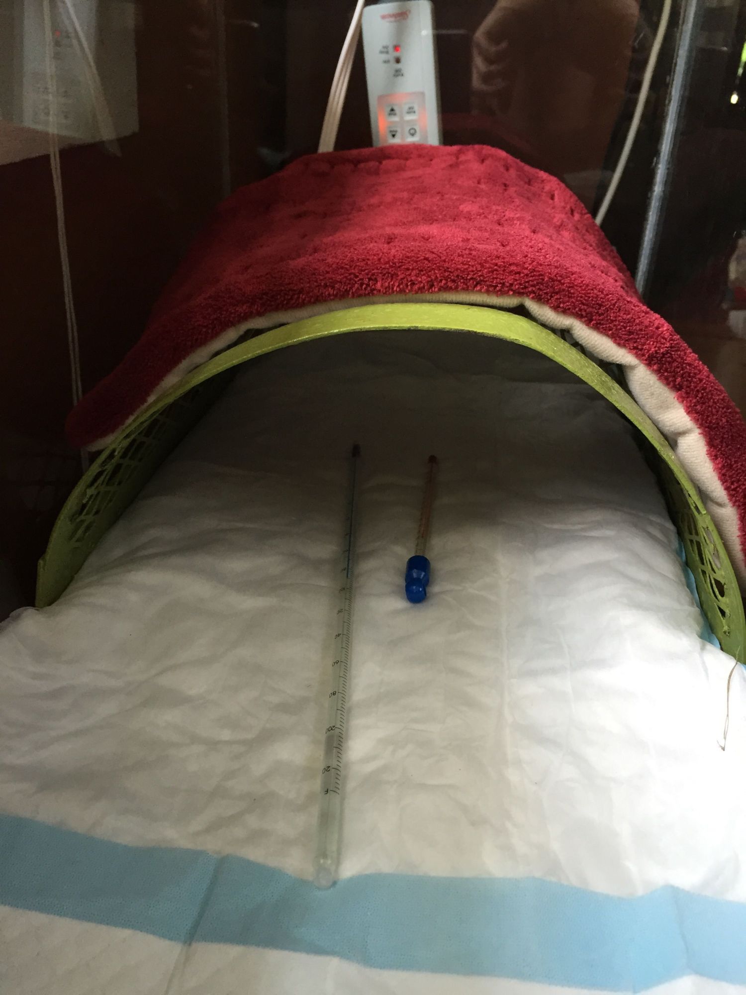 Maybe hay on top would help insulate more?? I don't usually use hay with newborns?