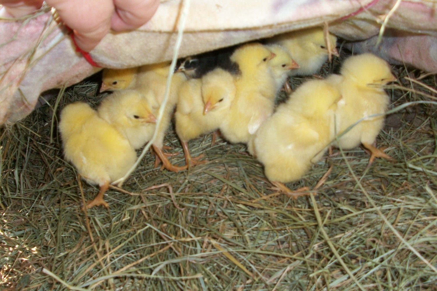 Chicks under the mama for a warm up....