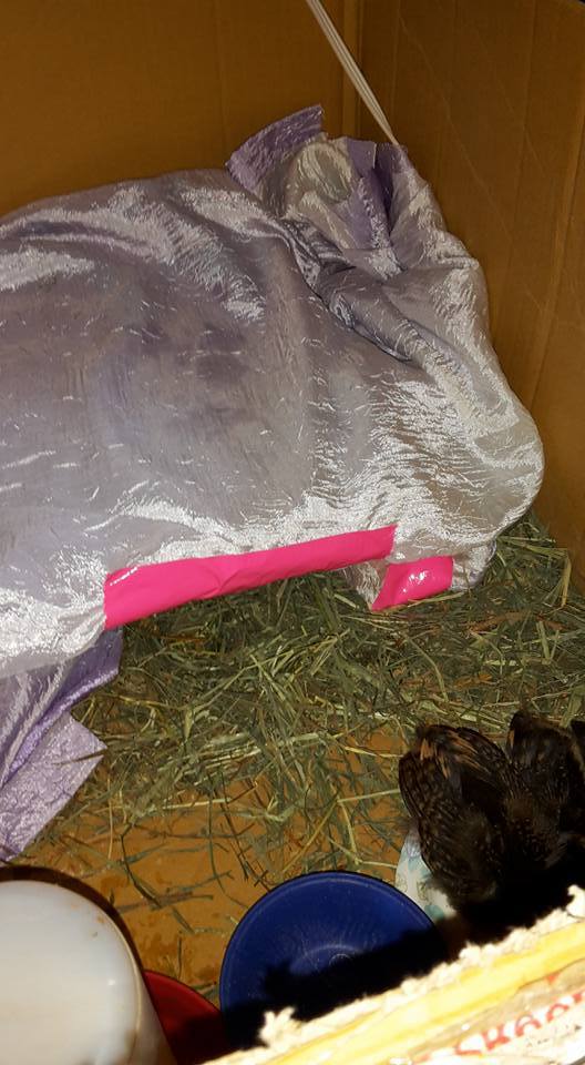 @Blooie Here is my payment. I took what you said and changed my mind. I used some cloth, some chicken wire, some duct tape and a sunbeam heating pad and made my brooder. It is not high like before, and maybe as the girls get older I will move it up to my original idea, which was 4 inches, not 7 like I originally tought. I tried to take a picture of the babies inside, but they are tucked way back getting warm. It was quite chilly here for the shipping. They are loving it. They are completely quiet and all I hear is a little tiny happy chirps. ere is the pic, wish it had chickies in it!!!!
