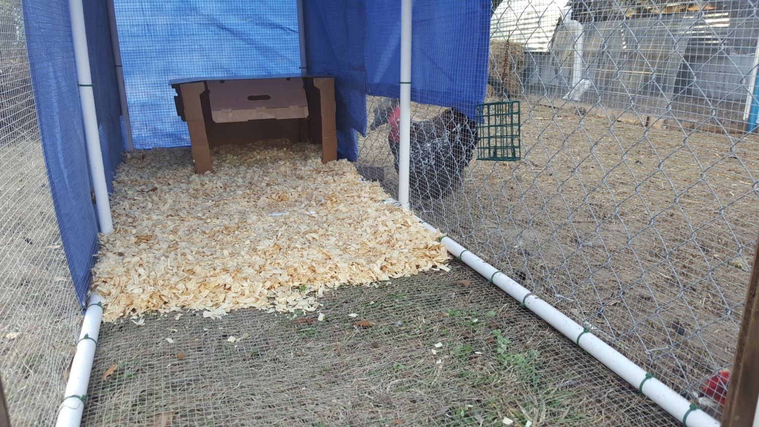 I need to replace the towel with some thing like wool that they can't pull through the hardware cloth. Little freaks... I hope they remember how to use MHP when they go back outside.