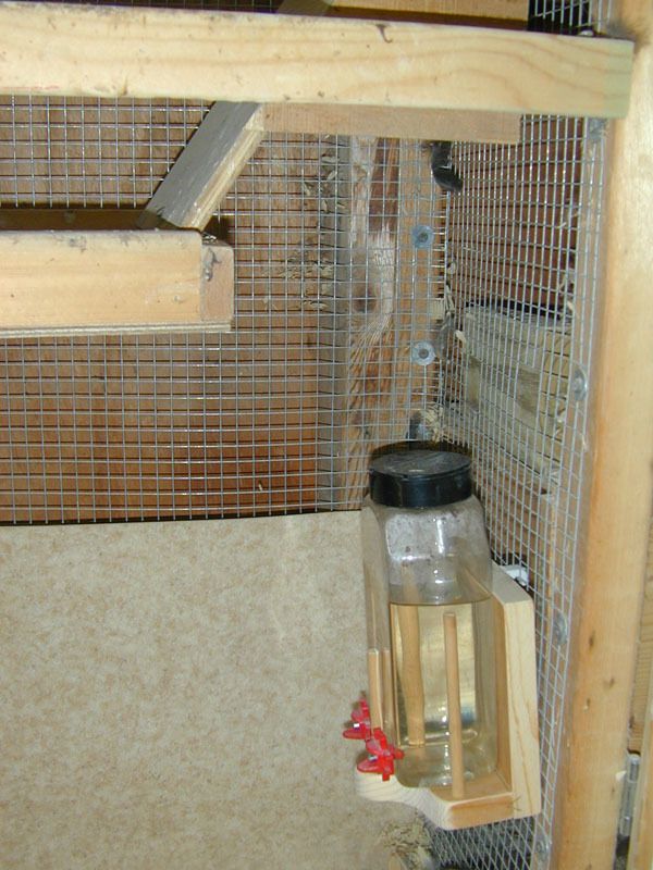 One key thing I do with the HN's is use a smaller drill bit (5/16 instead of 3/8" diameter) for a hole then only thread it in about halfway, this leaves it able to slide into the other container with the slot on the broody nest and also to have the nipple hold up the bottle on a wire cage. I'll take some pics of that and post them later. ETA: HN only partially threaded in, is water tight and strong enough to hold weight of 32oz of water. Slips over wire on crate Small wire wrapped around bottle and crate wire holds it near top. And a feeder held with a piece of unistrap. Both these can be filled from outside crate with out removing bottles. Have used these from various confinement reasons from chicks to pre-slaughter.