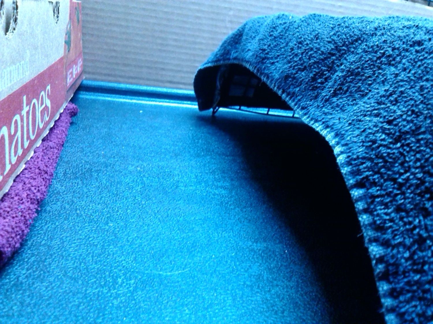We are planning on moving the crate out as soon as they are comfortable :) This is the frame, made out of recycled greenhouse shelving. [COLOR=B42000] [/COLOR] The heating pad is draped on top, with the end coming off the back. Would it be better if the heating pad were completaly on the frame? I figured it would be nice to allow the chicks to contact the pad if they need that extra heat. Is that a no-no? If it is, it is an easy enough fix. [COLOR=B42000] [/COLOR] Towel draped on top, we have some Glad press-seal that I will cover it with. [COLOR=B42000] [/COLOR] Any suggestions? I am open to any and all as I am new to this method! Thank you :D