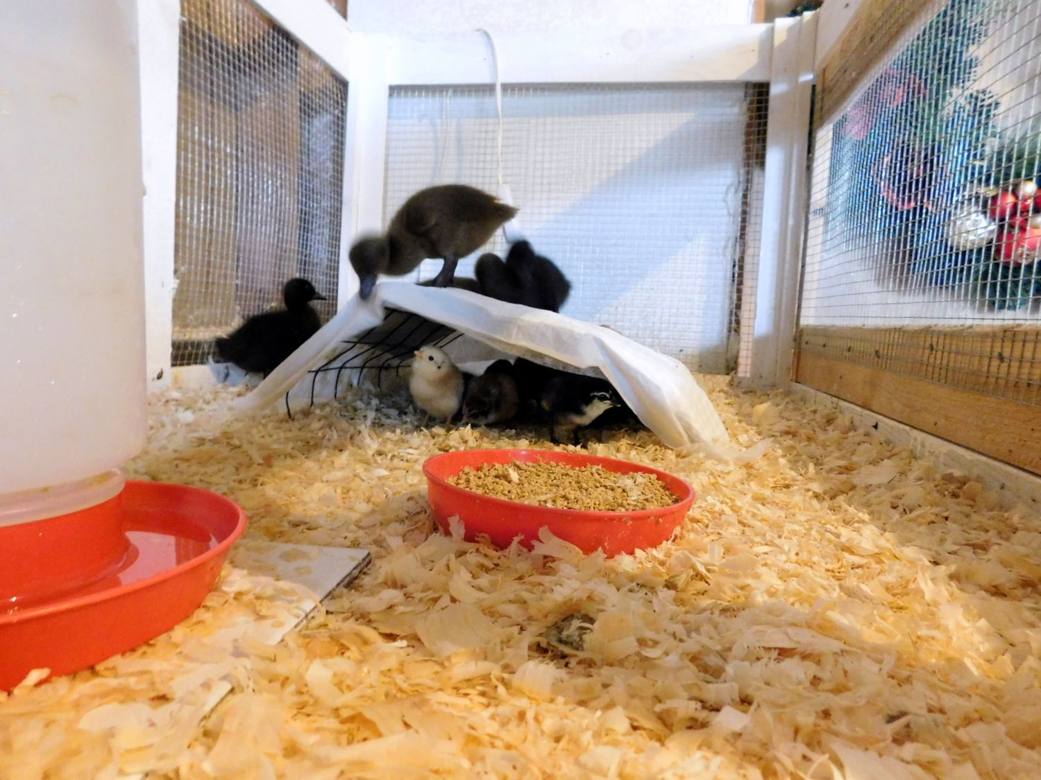 Actually, I get MORE wasted and spilled feed with those, I've stopped using them. The best it's gotten is to suspend a hanging feeder form the top of the brooder and raise it bit by bit. I still have some spills, but it's not as bad. But still some...