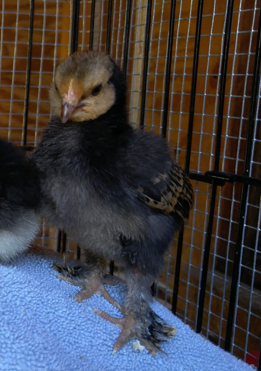 Well i had my first chick emercency this morning! A friend stopped by this morning and was admiring the antics of the chicks when she asked, "Where's Lee-Lee?" We looked under and around the MHP and didn't see her anywhere! So I raised up the towel on top of the set-up and there she was, trapped between the heating pad and the wire frame! She was trapped on her belly with her legs straight out behind her, and was panting. I have no idea how long she was trapped there. I managed to extricate her and dipped her beak in the water several times. At one point she expelled some slobbery looking stuff that i actually had to wipe off of her beak because it was so thick and mucousy that it was clinging to her. When i first set her down, she couldn't walk. I'm sort of assuming that her legs had lost feeling from her having them stretched out behind her for so long. She's walking now, but is still wobbly enough that another chick bumping against her will knock her over. She does try to catch herself though...she doesn't just fall over. She lays on her belly at the opening of the cave, and doesn't struggle at all when i pick her up which is VERY unlike her. I've been going out every half hour or so to dip her beak in the water 3 or 4 times, but I'm at a loss as to what else to do for her. Any suggestions? :(