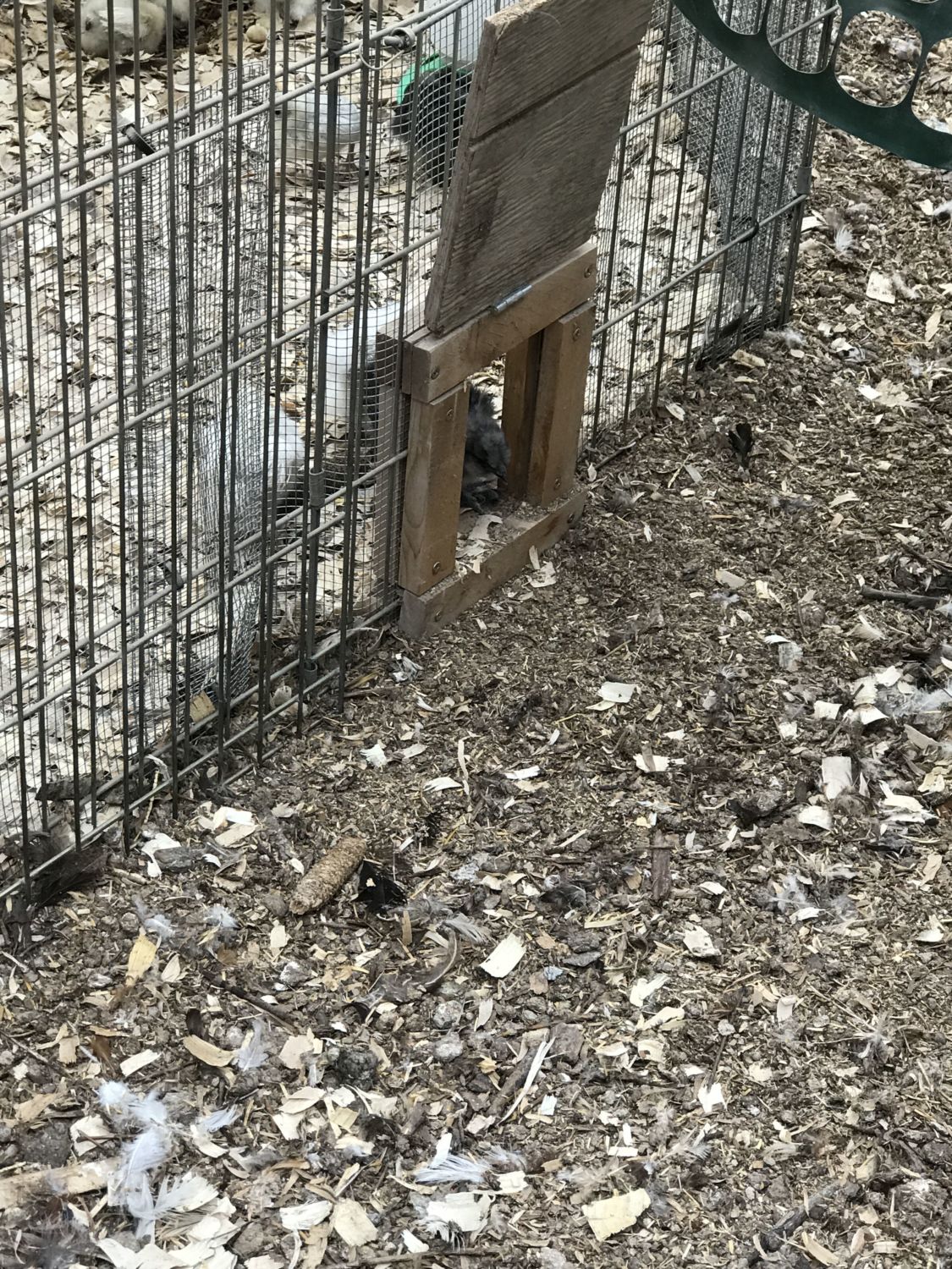 And first day of open portals went pretty well. Tank, our big Light Brahma, was amazing with them. She actually hovered over them, watching them. No aggression whatsoever on the part of any of the hens. We did have one issue, though. I knew there would be, and this one was my own fault.