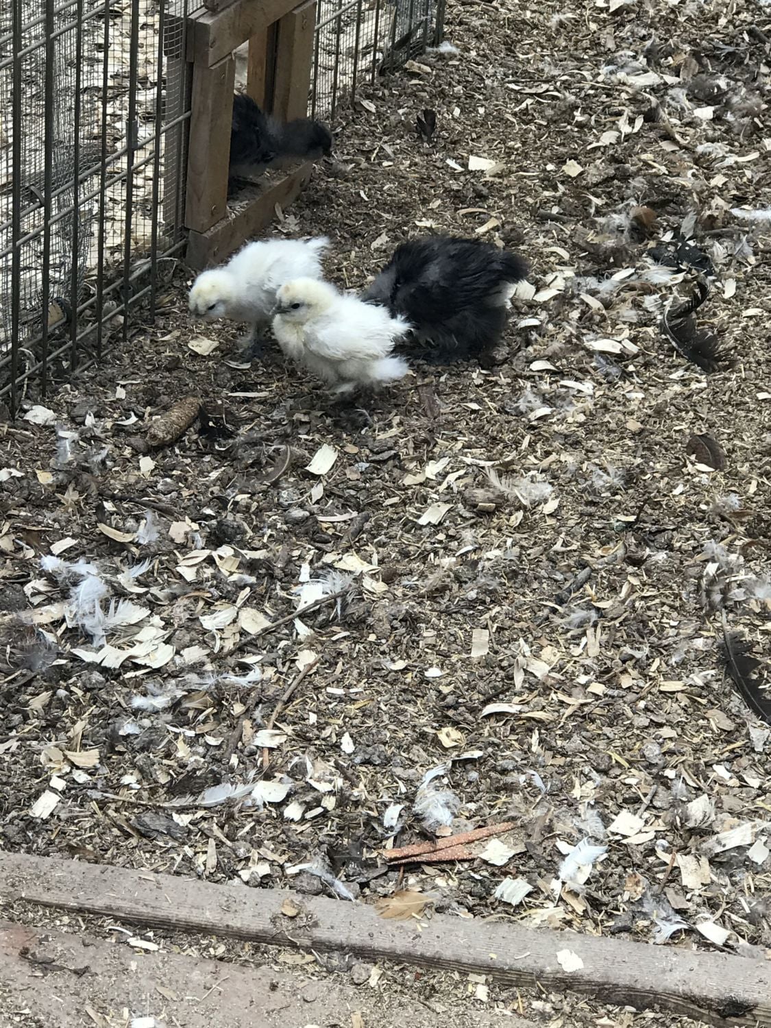 And there's little Dummy, over on the other side of the pen between the run and the brooder wire.