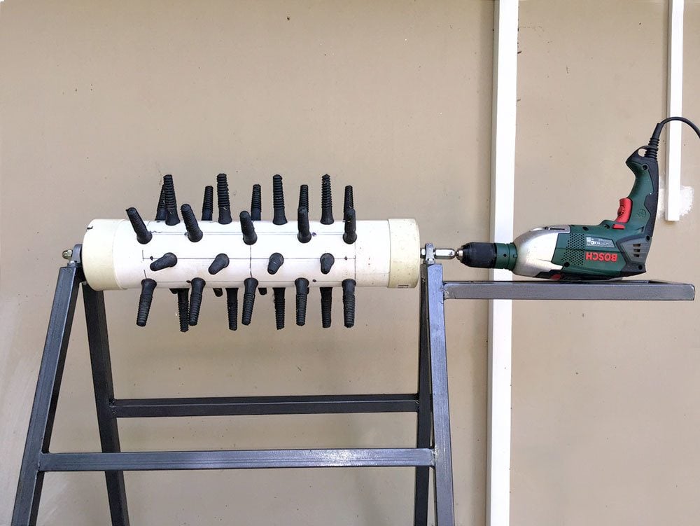 Exactly. Old washing machine with plucking fingers installed on the drum. Tried and true and cheap. Spin cycle.I want an electric one that works great. Heck with manuel labor!!