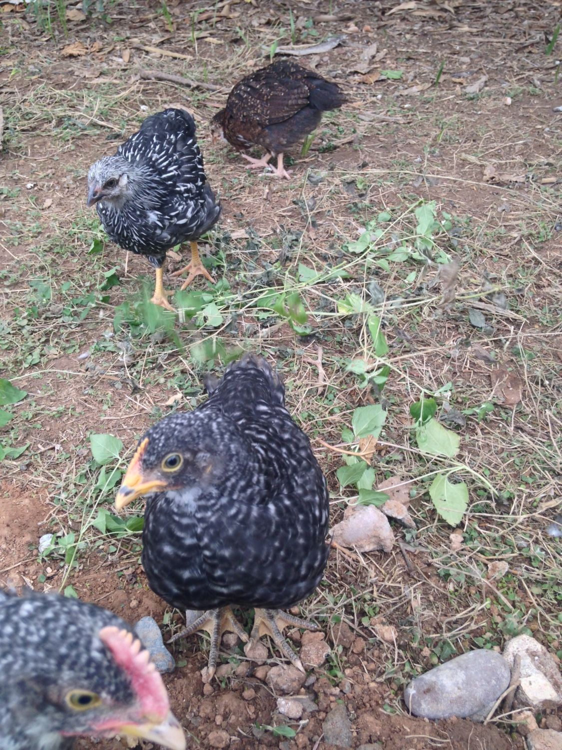 Is it posible you have two BRs? I see my CM on the right in the second picture you posted. Otherwise, the markings on your two are much more distinct than what I have. My CM's are mostly dark with a few white accents (except for my roo, which is lighter but still doesn't have the distinct markings yours have). I see in your pix that you have two that have very pronounced markings, and one that doesn't. I'm wondering if you got 2 BRs and 1 CM - especially since your last pic appears to show a well-marked lighter bird with yellow legs - my CMs are mostly black with some markings and light colored, realy pale legs. If you look at the pix I posted, you'll see the pullet (looks like the 1 of yours) and the roo (pale like the 2 of yours but without the distinct markings).