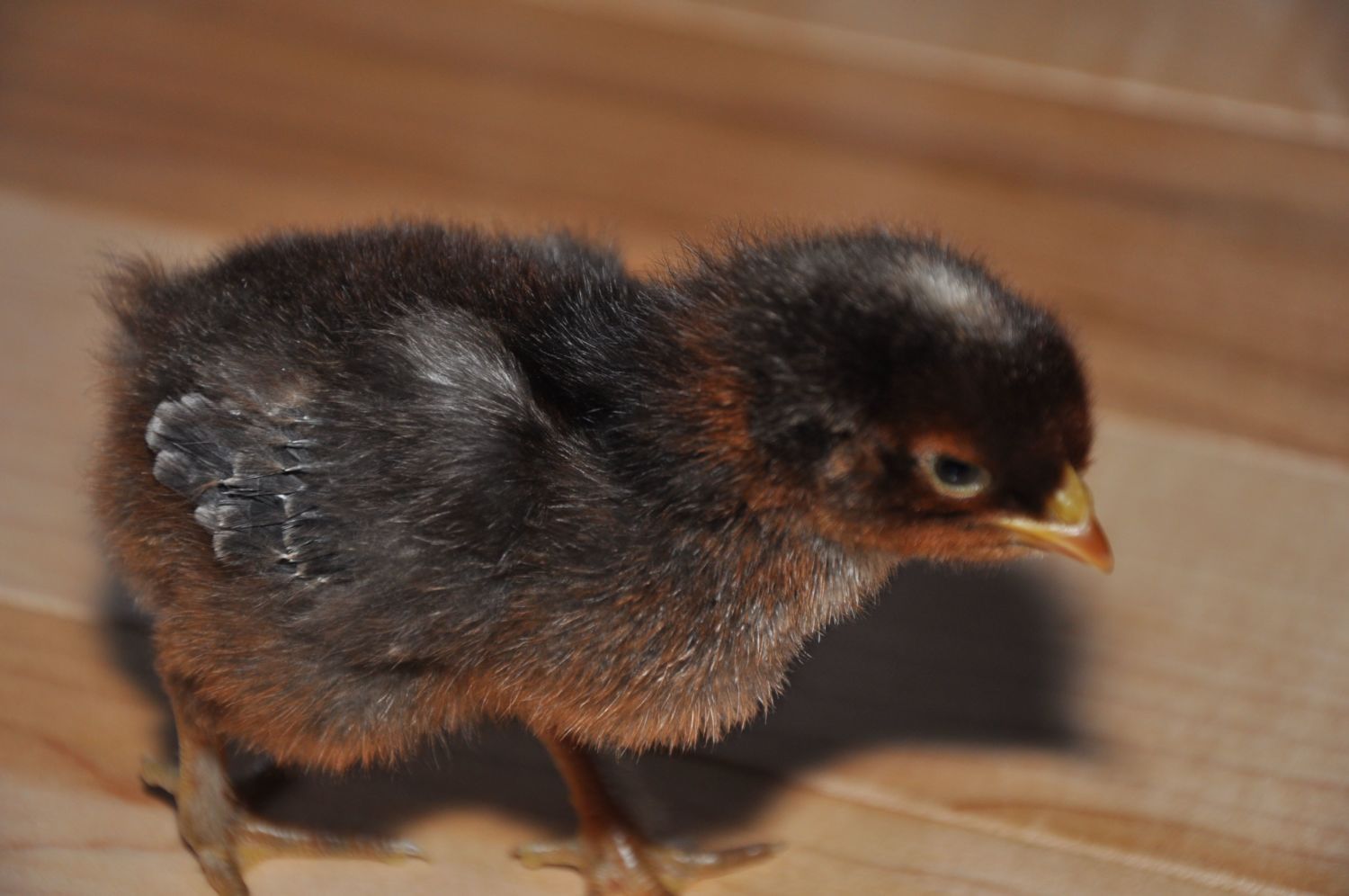 she has feathered legs.... so that means blue splah or maran (or mix?)... the hatchery says there are "blue splash" marans that show only the black coloring, no blue. i am assuming that the black expression in the blue maran line is not the same thing as a black copper maran. anyway, you can really see how red she is here!