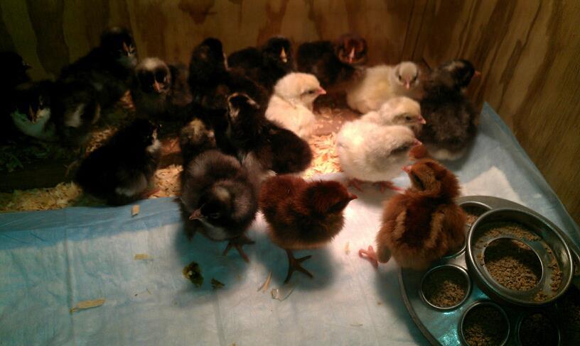 Newest pic of the brooder babes...8 more still in incubator fluffing up and getting their land legs...Meet Teddy and the Chicks.