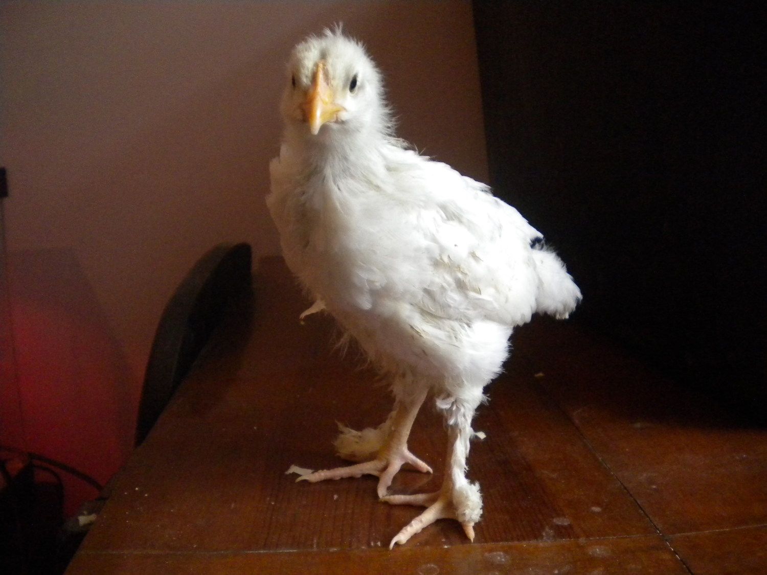 Ok, I have a question about Marans. This is my first time having them and are they a larger size breed? My chick is HUGE compared to my other breeds. She also seems very alert about her surroundings, but very sweet and likes to be held. Also she is suppose to be a Blue Splash, but I really don't see any color on her but white :hu  either she is a really light splash or white. What do you all think?