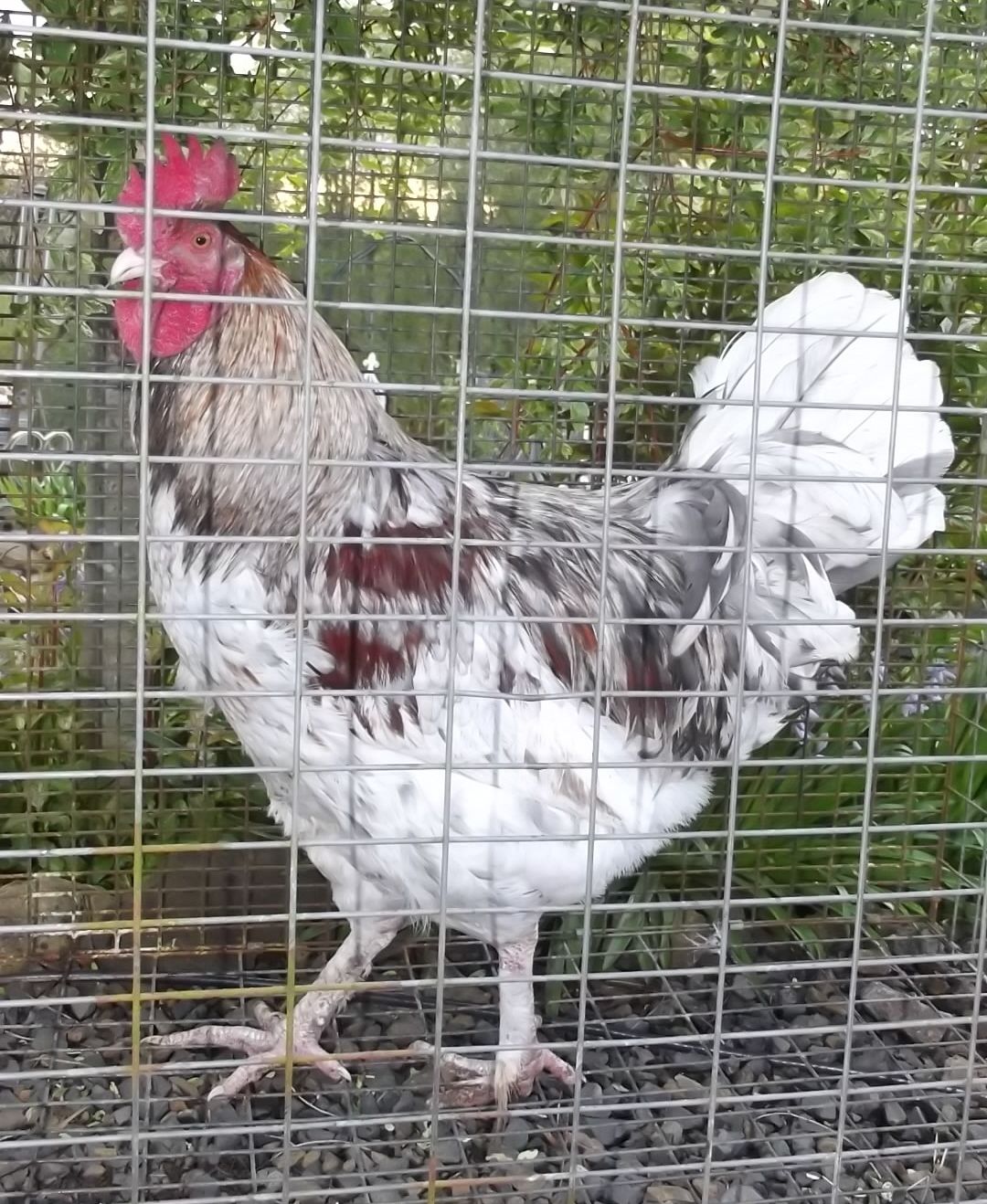 Speaking of pathetic crowers and pathetically late crowers.........this 6 mos. old young man just learned to crow not but a couple weeks ago and last night just as his new owner stepped out of his truck, the bird let out the worst attempt at a crow I think I have ever heard. The guy purchasing him looked at me like..... "What the heck was that?" I responded with......"IDK, but at first I thought he was dying....good thing his looks make up for it."