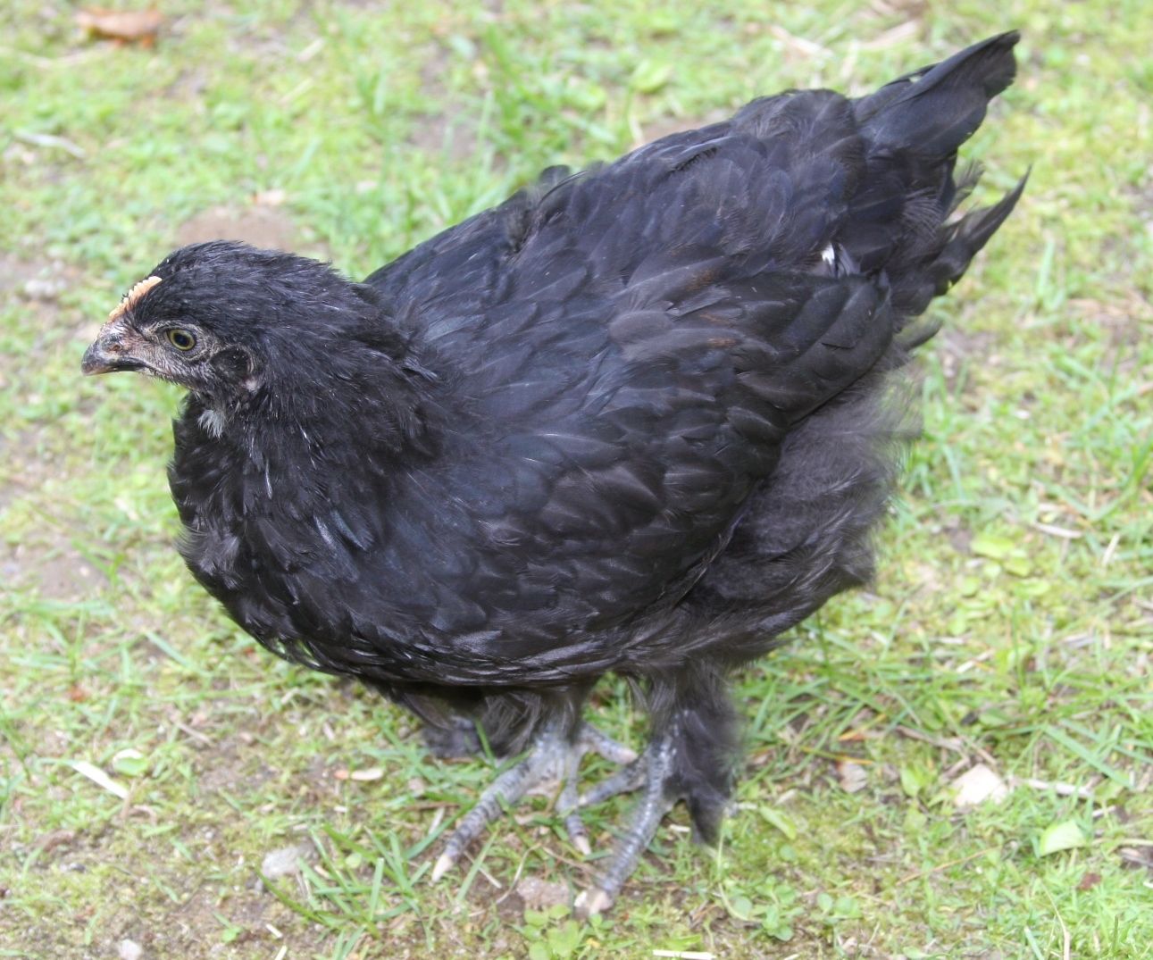 They are still very young, so a lot can change in the next 6 or more months! The white on the wings should go away as they get older, or with their first molt. The copper may or may not come in, and sometimes it doesn't come in until their adult molt at about a year old. Even though they may not express the copper, keep in mind that they are still genetically Black Coppers, and not a true or pure Black. That first bird has something going on there, looks like barring?? If it were just the straight patches of copper on her body, I would call it "mossy", but she looks barred to me. Pinkchick had this sort of thing come up in her flock, she would be able to help you more than me.I'm new to Marans, but fell in love with them last fall when I saw a flock of them at a breeders place, so I got some chicks this spring. They were straight run and I only ended up with 3 girls. One of them is quite beautiful even though she didn't turn out black. I'm going to keep her anyway, because she is such a sweetie pie. The other two are all black with a white spot on the tip of their wings. I wonder if the white will disappear as they get older. The white on their faces has been slowly disappearing as time goes by. There has been no copper showing up on the two black ones yet. I think they will end up being completely black.....except those white spots on their wing tips. Can anyone tell me about how the colors change as they grow? They are eight weeks old now.