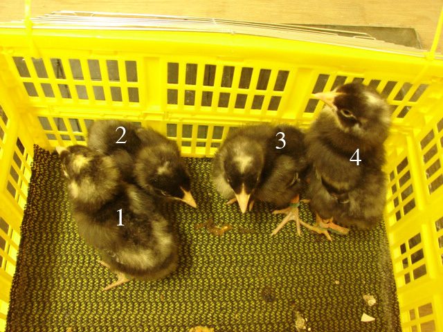 Hey i need some help.... i just hatched some marans and i think she only runs nlues and black so no splashes are possible but i have a yellow chick with black spots what could it be? Sport white or wheaten? I cant do pis right now but tonight...... the spots r making me think wheaten......