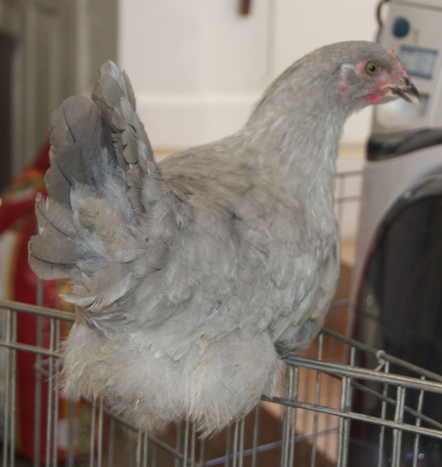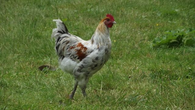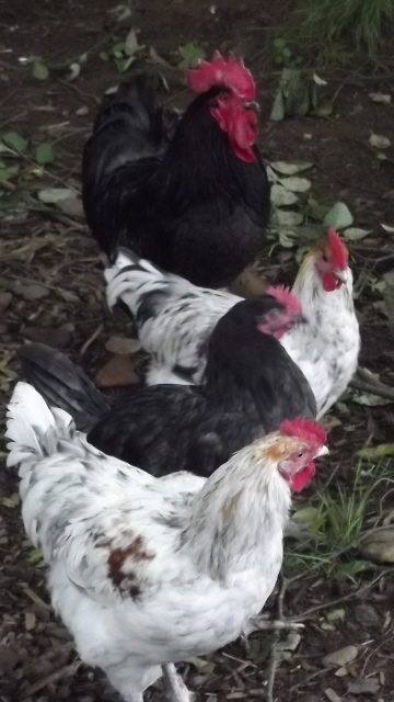 7-ish months old. Hatched from a good colored egg. Has better leg feathering, lighter leg color and after looking closer at him yesterday, he has good eye color, not too light like I had thought previously. Has an uneven serration in the middle of his comb. Sorry, best photos we are going to get, my cat, Oatmeal, was very helpful this morning while taking photos and kept all chickens on their toes.